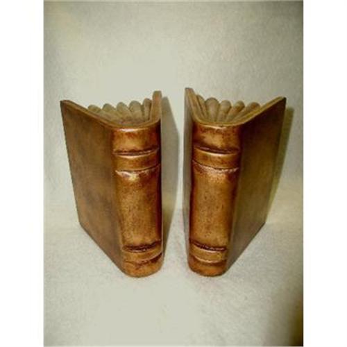 </font></strong>Pair of stunning bookends in the shape of a semi open book with the covers and spine in antique gilt over marble. The 6 pages and covers are all cut from the same marble piece and grooved in 1/2 inch pages each. Gorgeous coloring with the antique creamy background and hues of rust,gray and brown swirled throughout. The bottoms are smooth. Excellent condition,no nicks,chips or cracks. Measure 4W X 5.75H X 4.25D. </font>