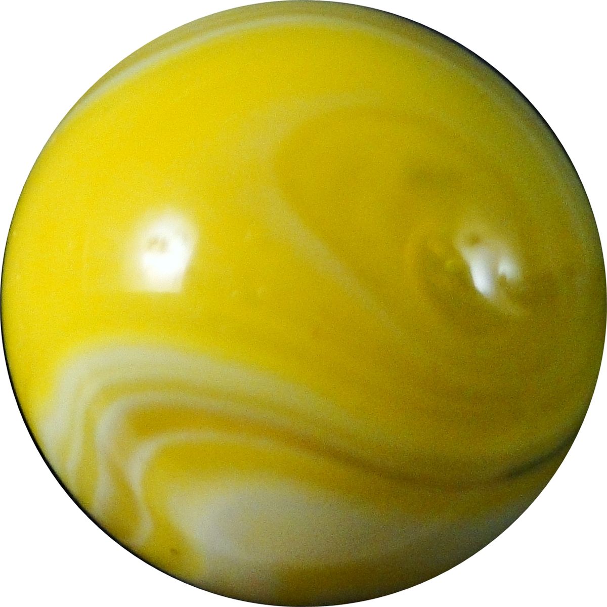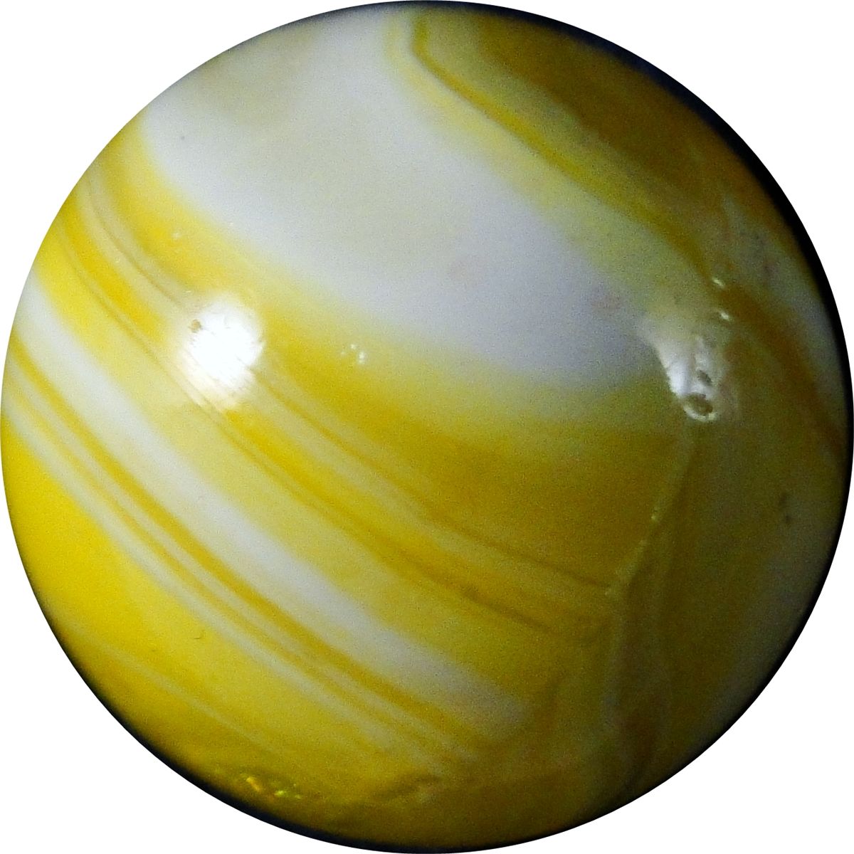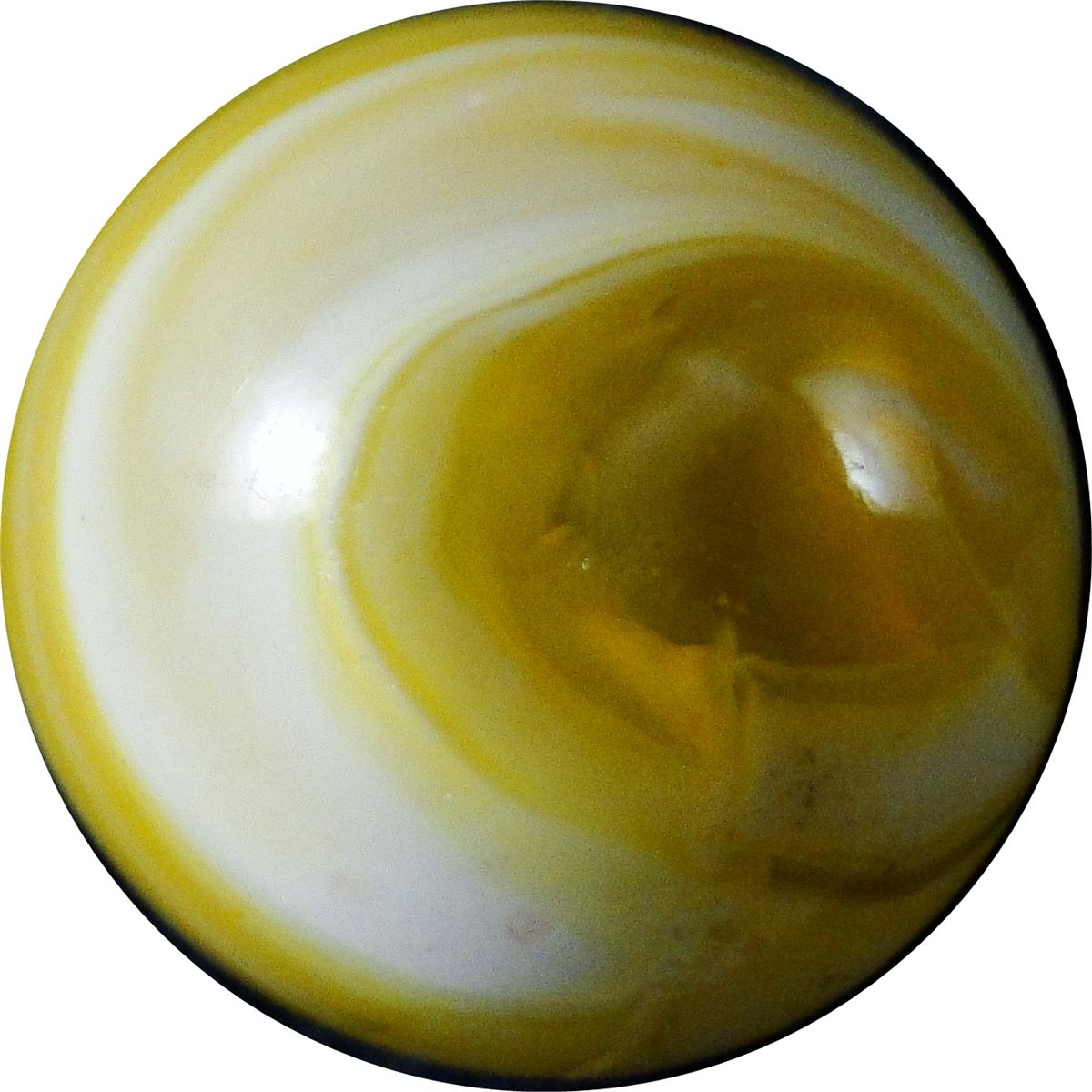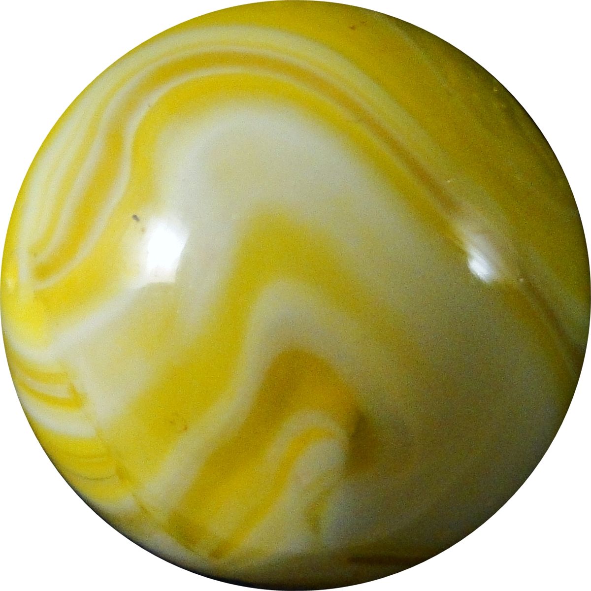 CHRISTENSEN AGATE COMPANY, Slag. Beauty. Electric transparent yellow and opaque white. Diaper fold pattern. In remarkable condition, except for a tiny blown airhole and a sparkle in the diaper fold. Cambridge OH, circa 1927-1929. 5/8". Mint(-) (9.1).