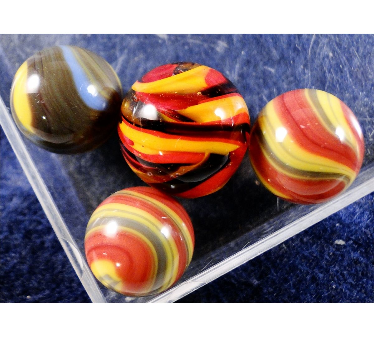 CONTEMPORARY HANDMADE, . Lot of four marbles. One is a transparent swirl and is Scott Patrick. The other three are multicolor corkscrews and are probably Scott as well. 17/32" & 19/32". Mint.