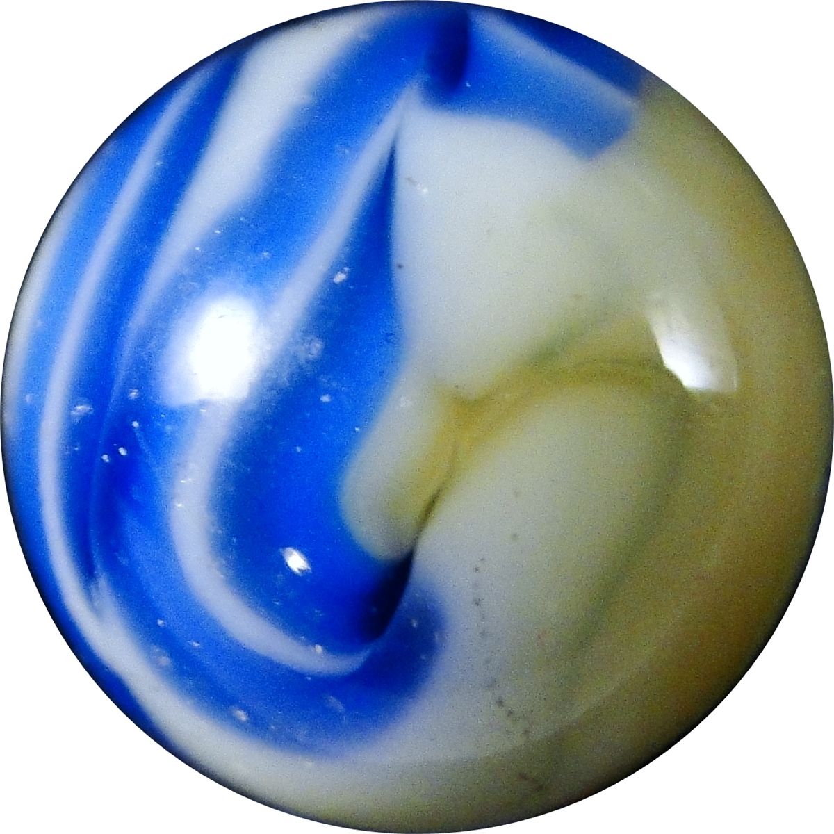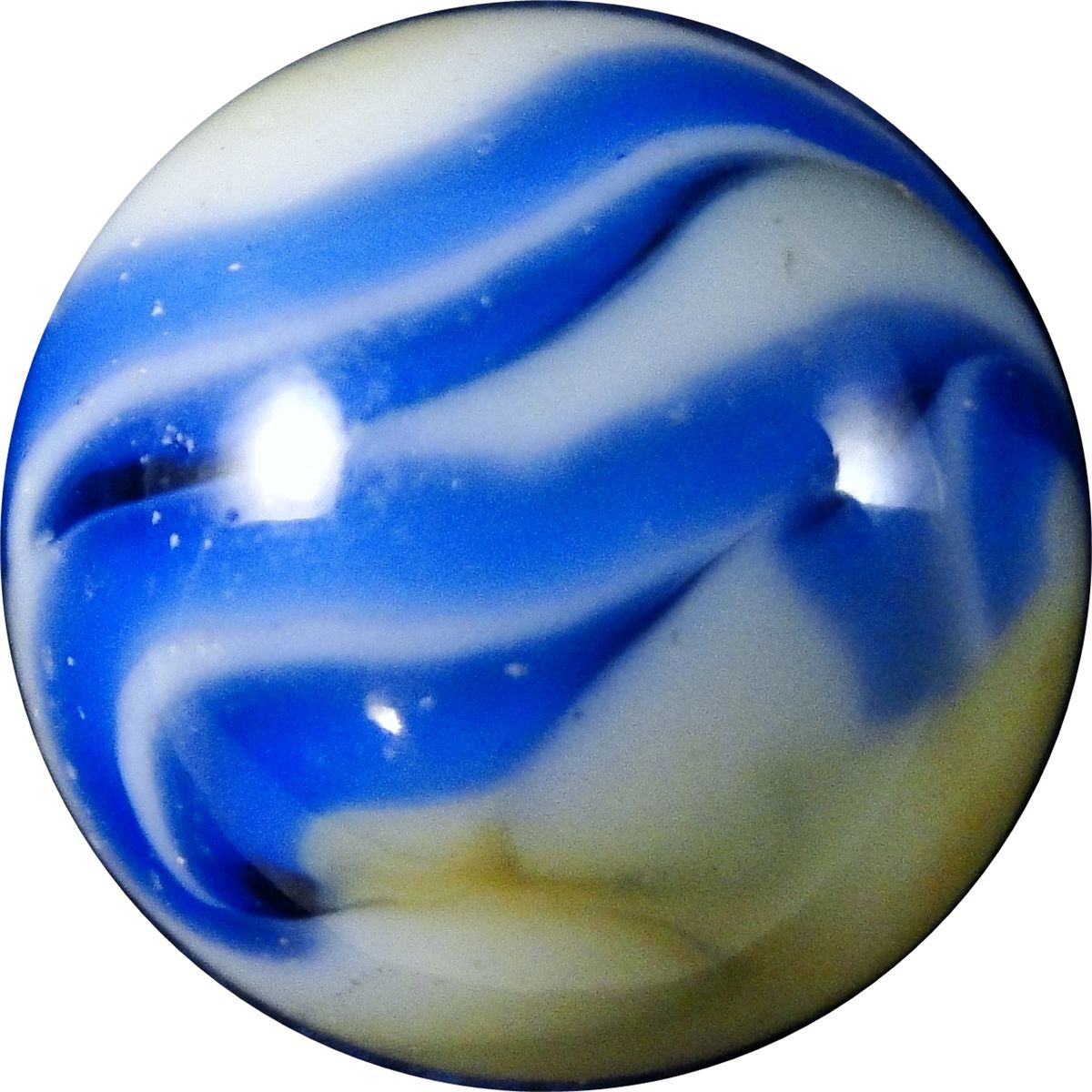 ALLEY COMPANIES, Swirl. Blue, light brown and white swirl. Pretty. West Virginia, circa 1930-1945. 9/16". Mint (9.9).8.9).