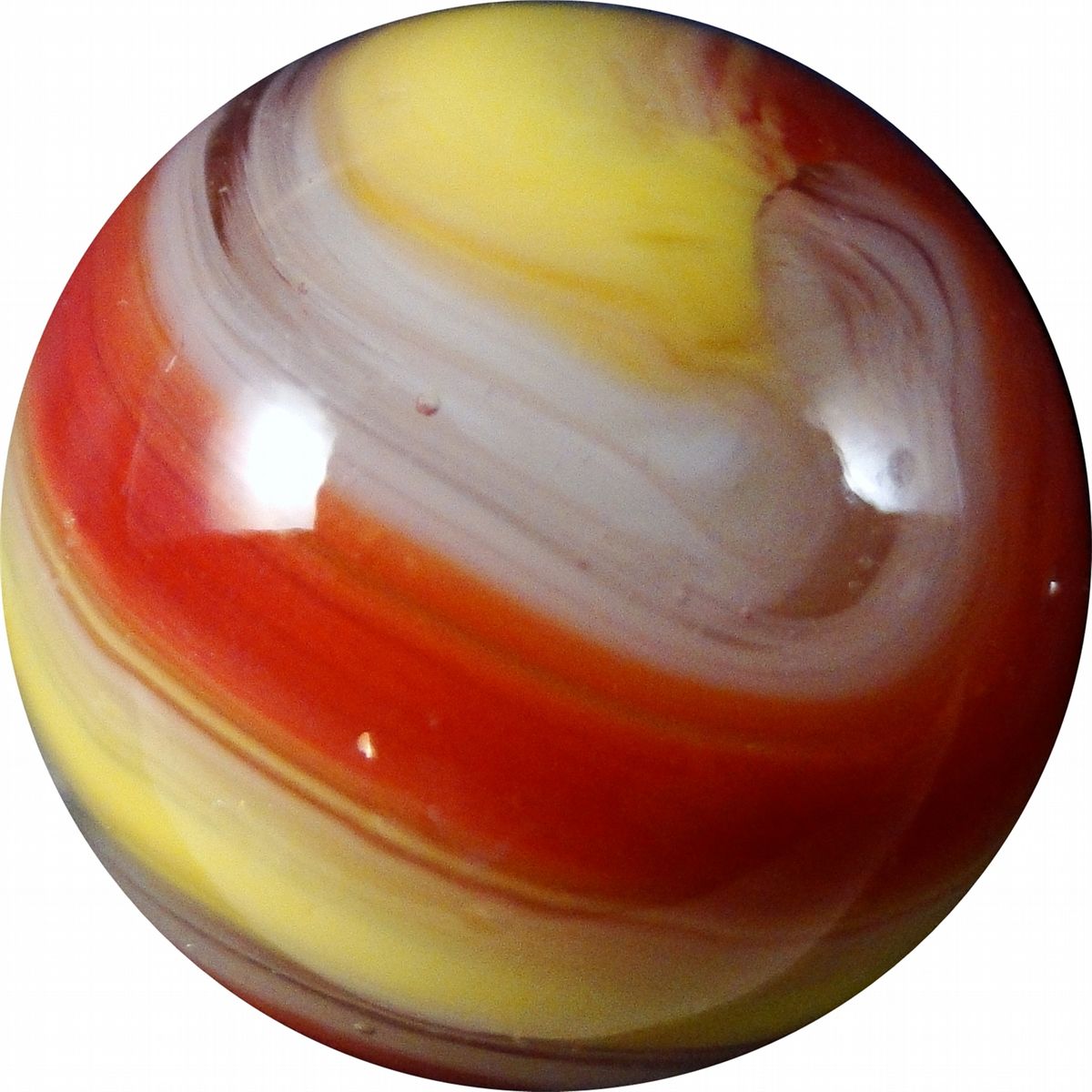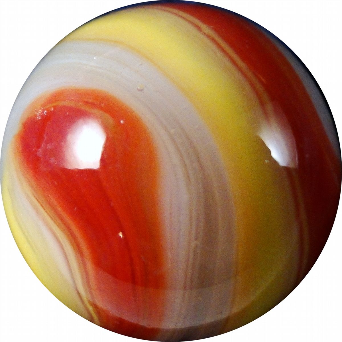 Marble: Lot 93. Akro Agate Company. Red/Yellow Popeye Corkscrew. 23/32". Mint 9.9.