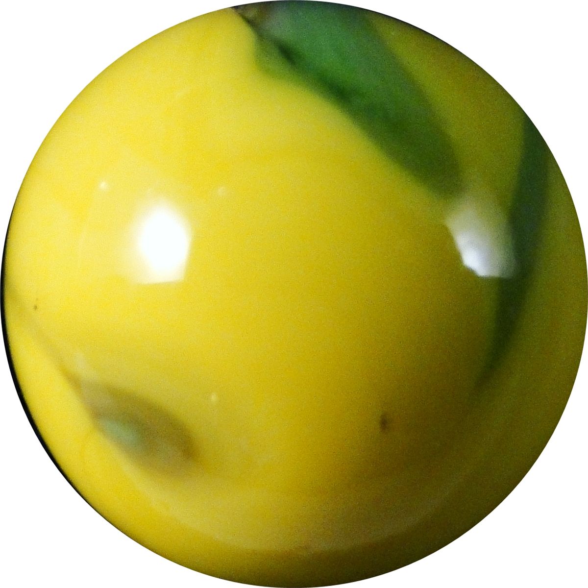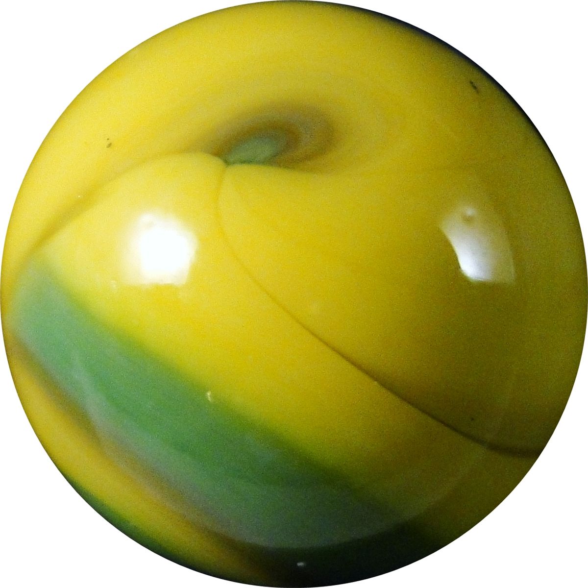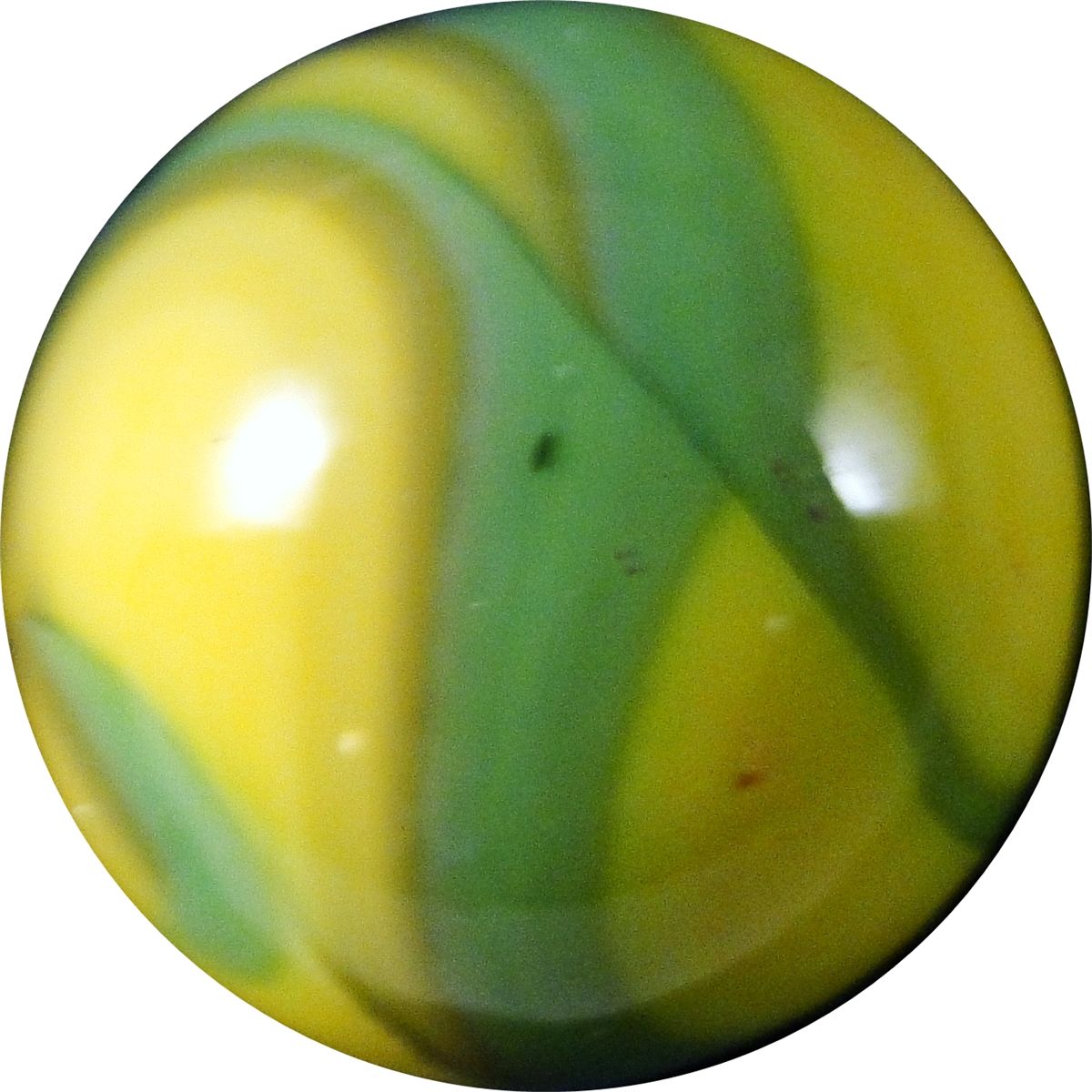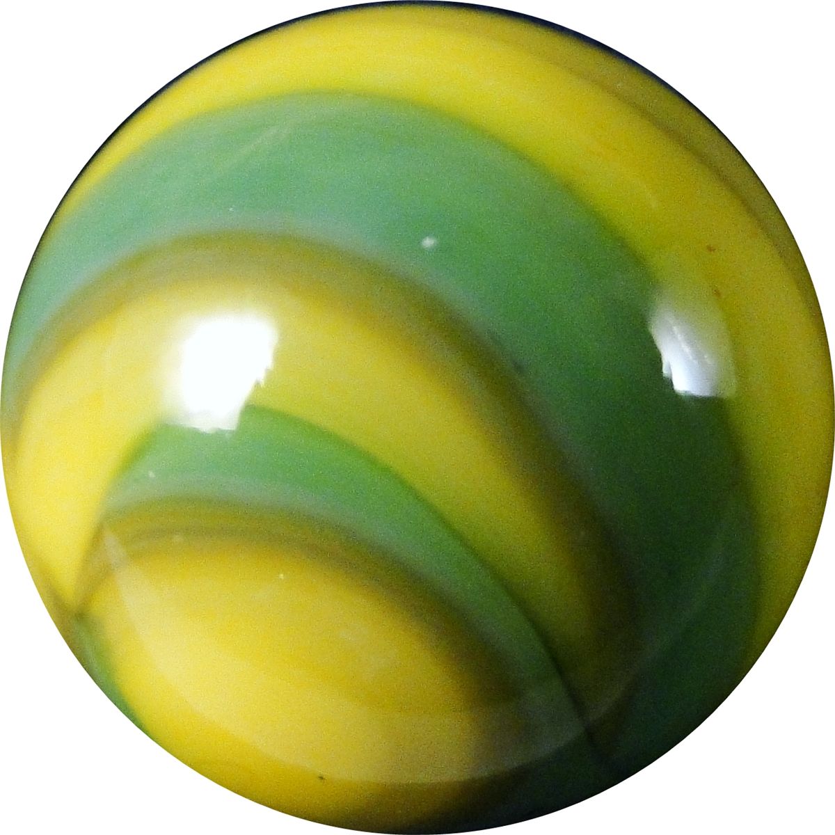 ALLEY COMPANIES, Swirl. Three-color swirl. Green, edged by brown, in yellow. Beauty. West Virginia, circa 1930-1932. 5/8". Mint (9.9).