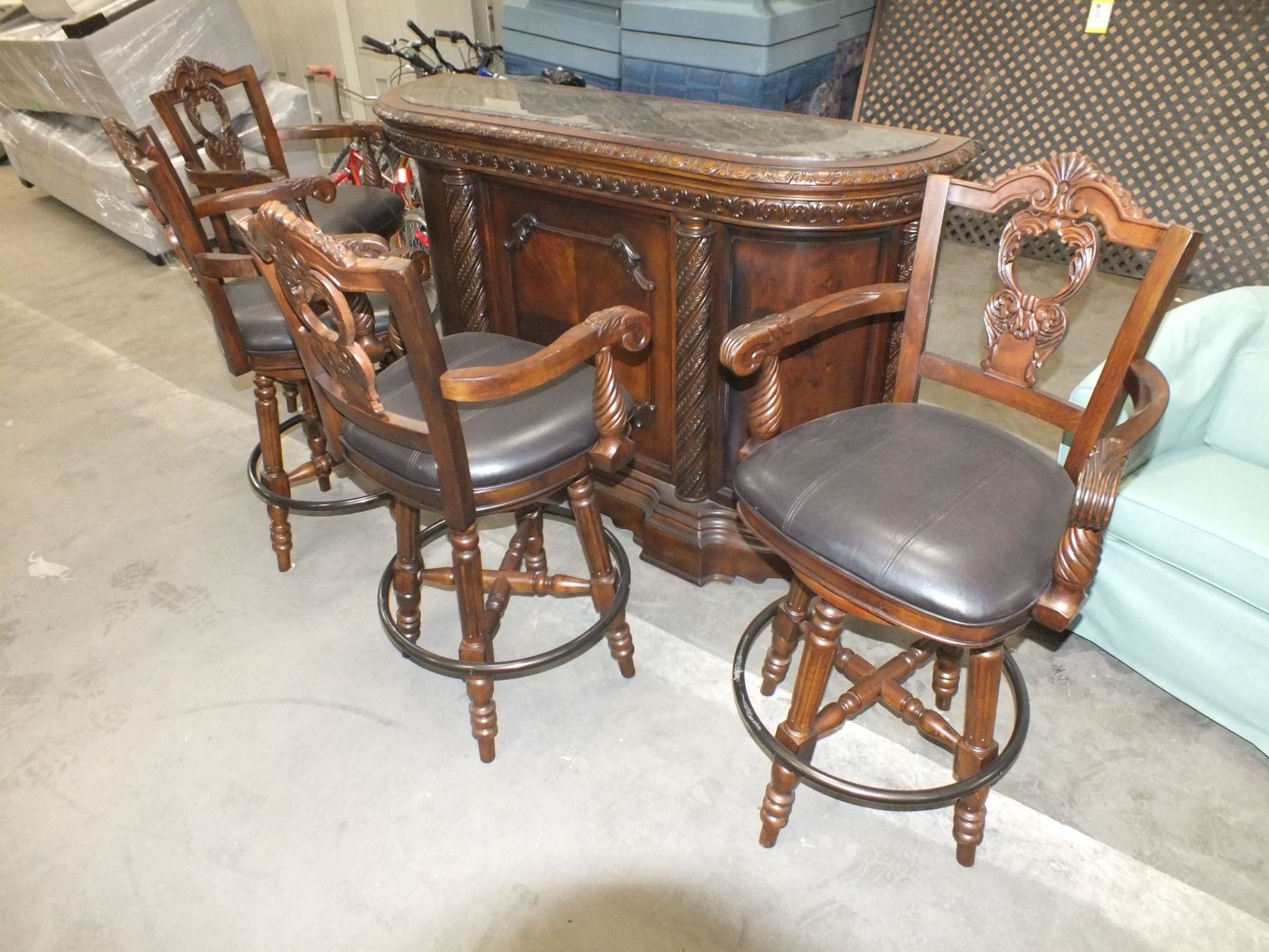 Marble Top Bar & 4 Stools in really good condition, 68"l 42 1/2"h...Used