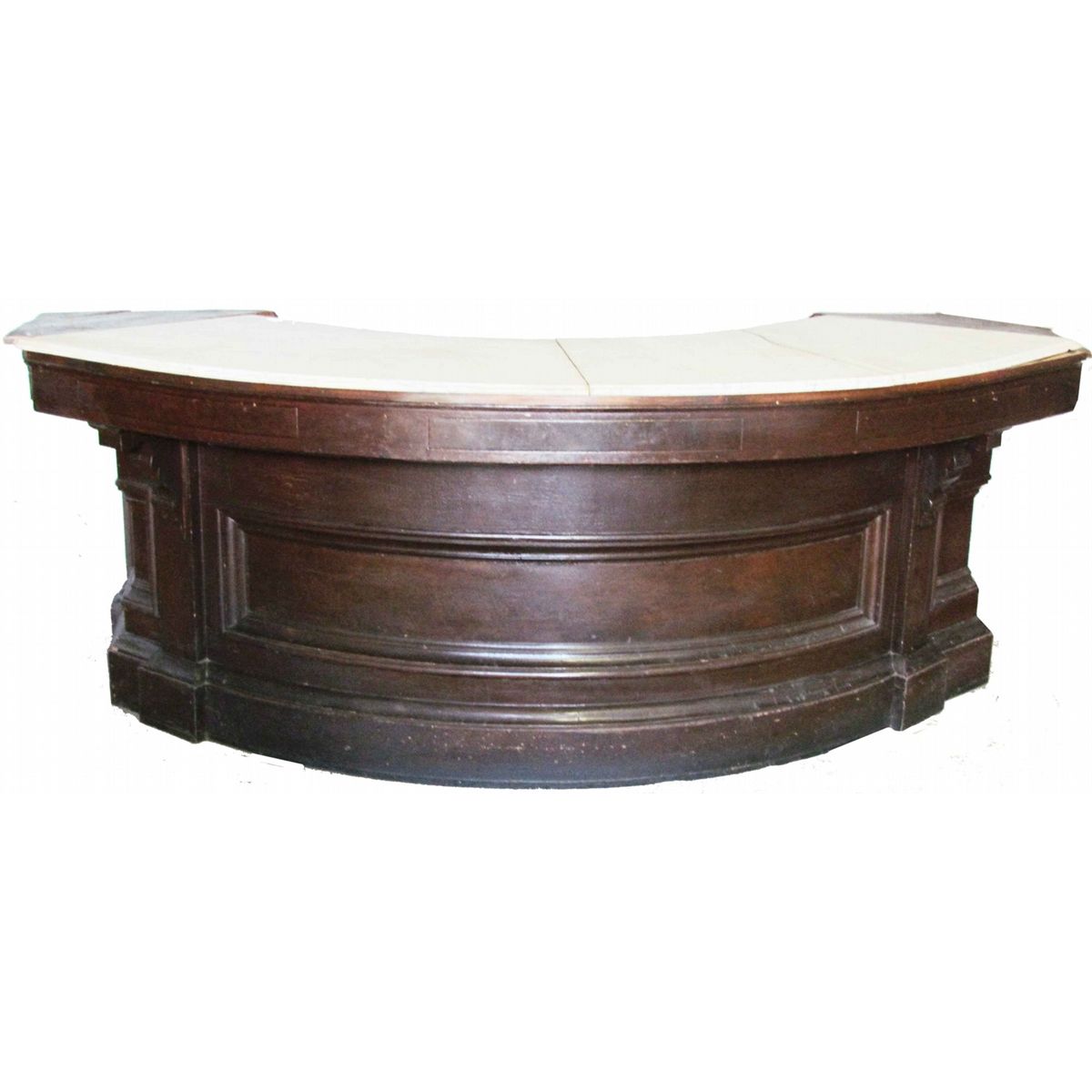 Marble Top Curved Store Counter. Mahogany. Marble missing on left corner otherwise good condition. 112 X 40 X 64 inches.