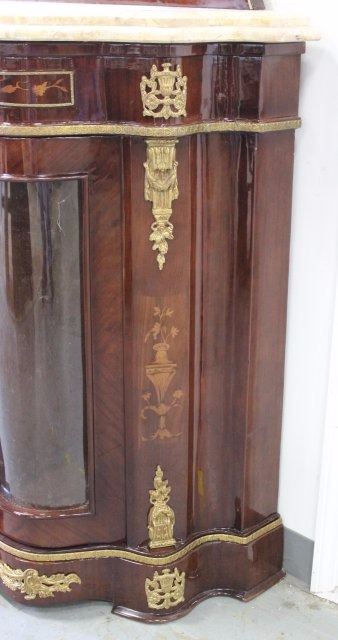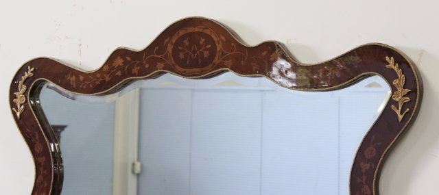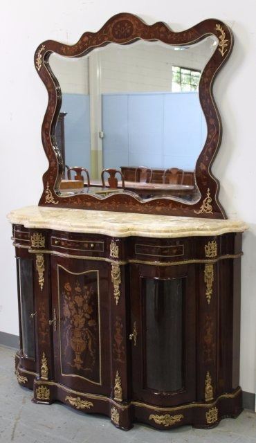 Contemporary. 3 door bottom, 2 glass door sides. Sideboard approx. 39" high, 57" wide, 19 3/4" deep, mirror - 42 1/2" high, 49" wide.