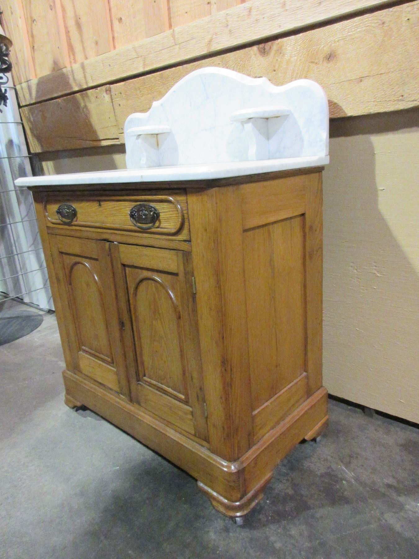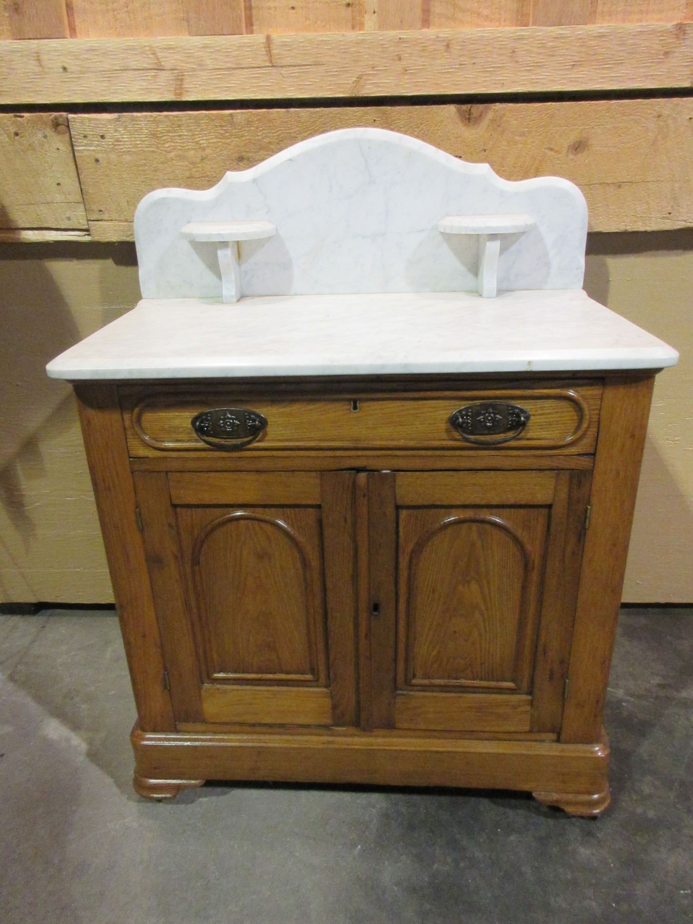 Marble Top Oak Washstand- Original Hardware- 42"H X 30"W X 17.5"D- Excellent Condition