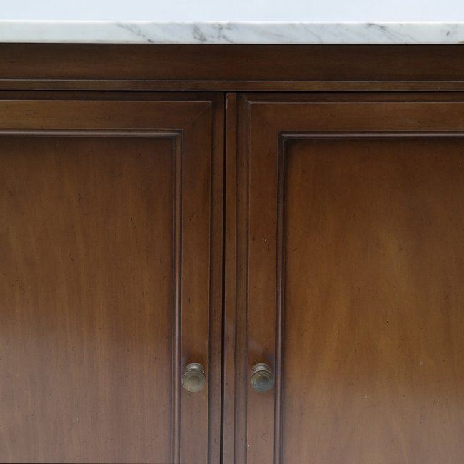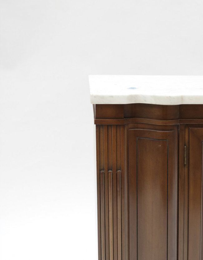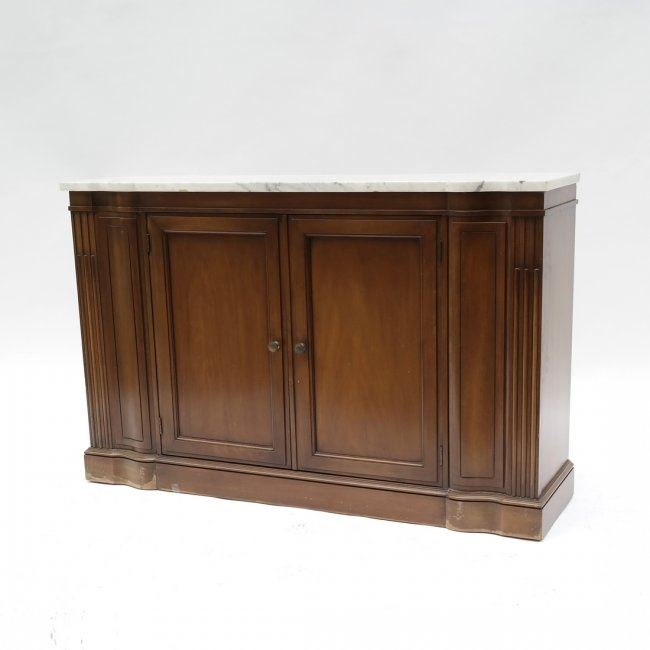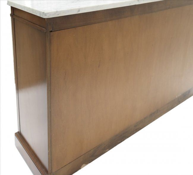 Marble top two door credenza. [44" W x 11 3/4" D x 28 1/4" H].