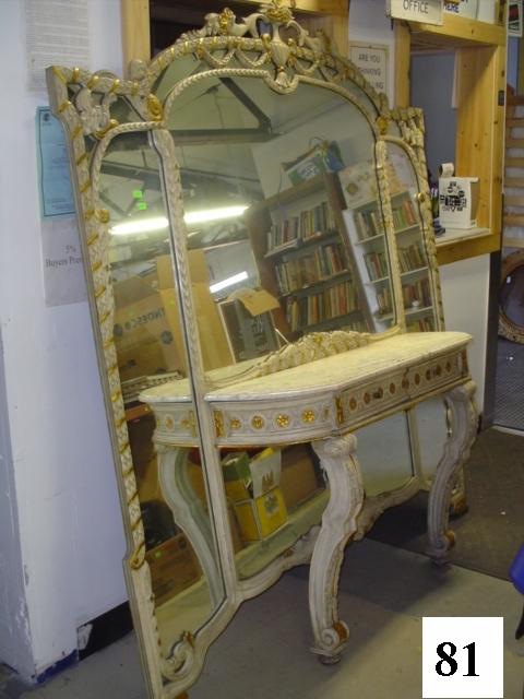 Marble Top Vanity w/6 Foot Wide Ornate Mirrored Back Frame