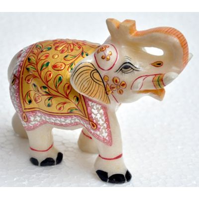 Marble UpTrunk Elephant w/ Gold Plated Design 4in.x5in. **|**|** Subject: UpTrunk Elephant ; Material: Marble ; Size: 4in.x5in. ; MSRP: $100