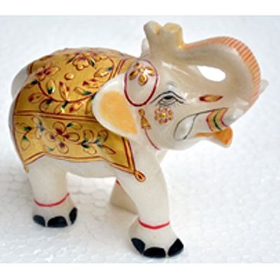 Marble UpTrunk Elephant w/ Gold Plated Design 4in.x5in. **|**|** Subject: UpTrunk Elephant ; Material: Marble ; Size: 4in.x5in. ; MSRP: $100