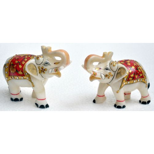 Marble UpTrunk Elephant w/ Gold Plated Design 4in.x5in. **|**|** Subject: UpTrunk Elephant ; Material: Marble ; Size: 4in.x5in. ; MSRP: $200