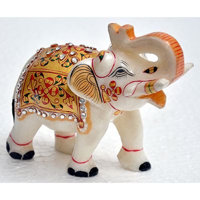 Marble UpTrunk Elephant w/ Gold Plated Design 4in.x5in. **|**|** Subject: UpTrunk Elephant ; Material: Marble ; Size: 4in.x5in. ; MSRP: $100
