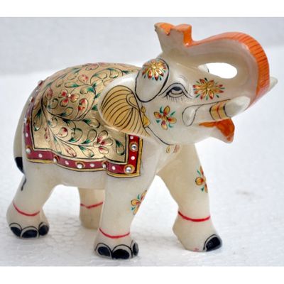 Marble UpTrunk Elephant w/ Gold Plated Design 5in.x6in. **|**|** Subject: UpTrunk Elephant ; Material: Marble ; Size: 5in.x6in. ; MSRP: $100