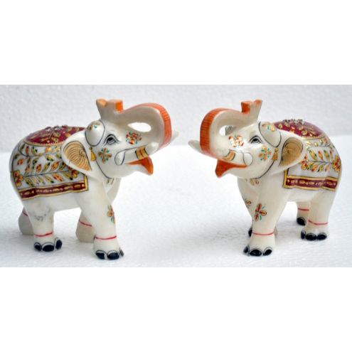 Marble UpTrunk Elephant w/ Gold Plated Design 5in.x6in. **|**|** Subject: UpTrunk Elephant ; Material: Marble ; Size: 5in.x6in. ; MSRP: $200