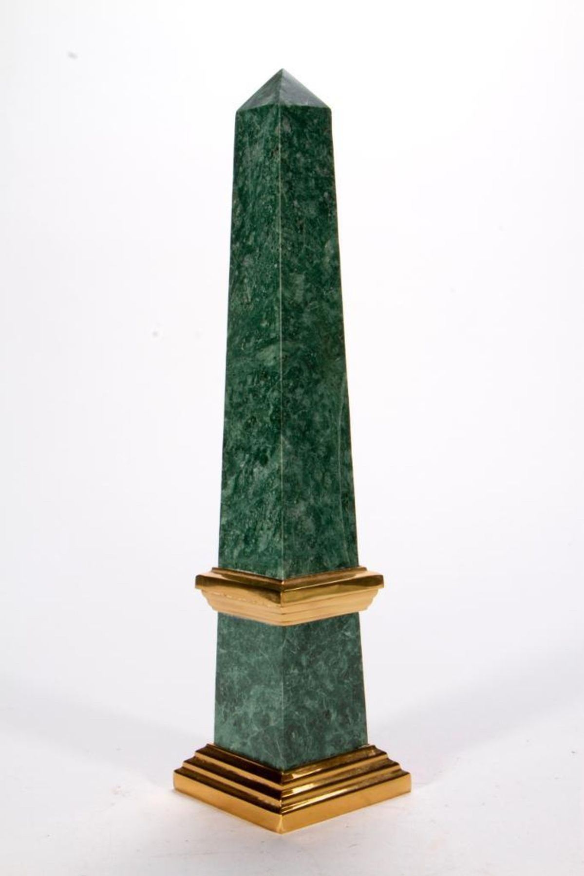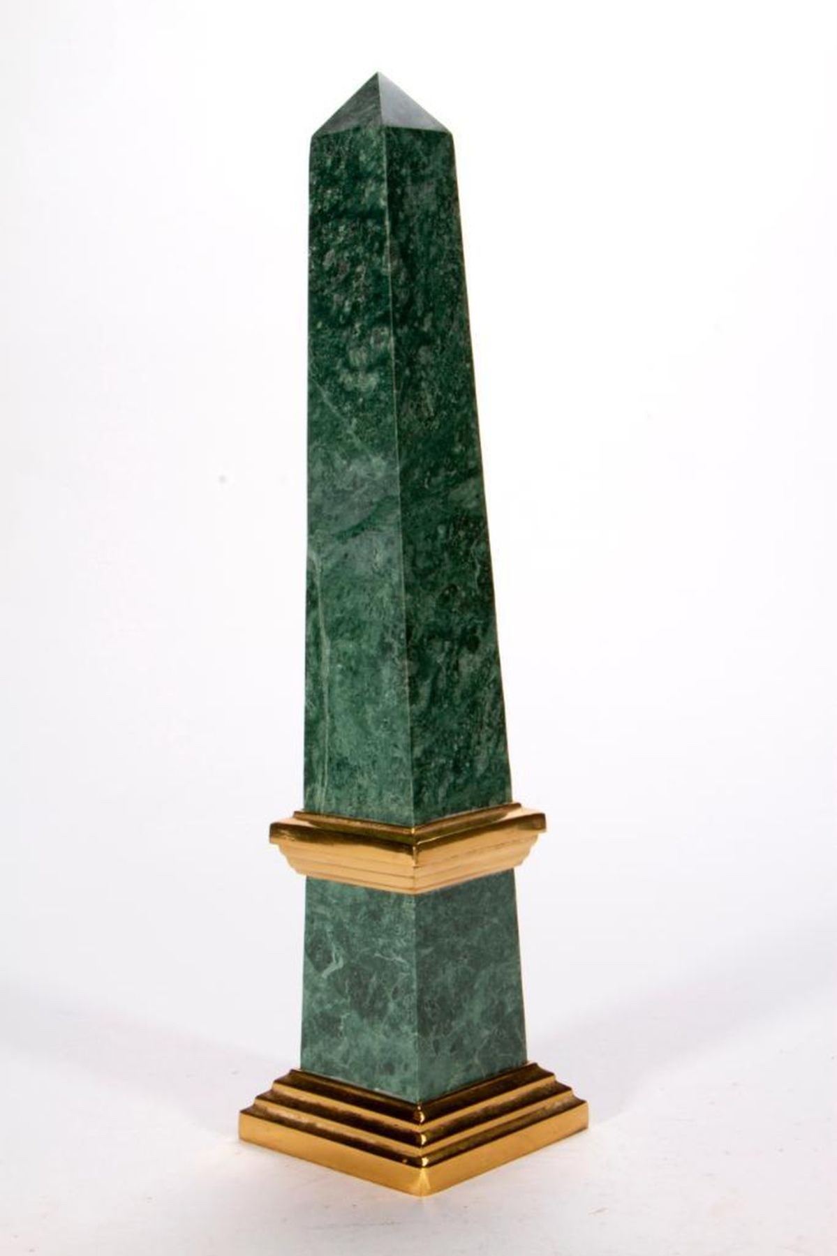 Marble and brass obelisk. H - 14 1/2" Base - 3 1/2" square. Condition: Good.