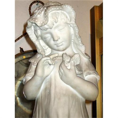 A beautiful well carved marble sculpture , Girl and Bird , made with exquisite detail and fine expressions , clear indicative of a experienced good Sculptor but unsigned , measures 23 inches tall and it is very heavy. Shipping within US $275