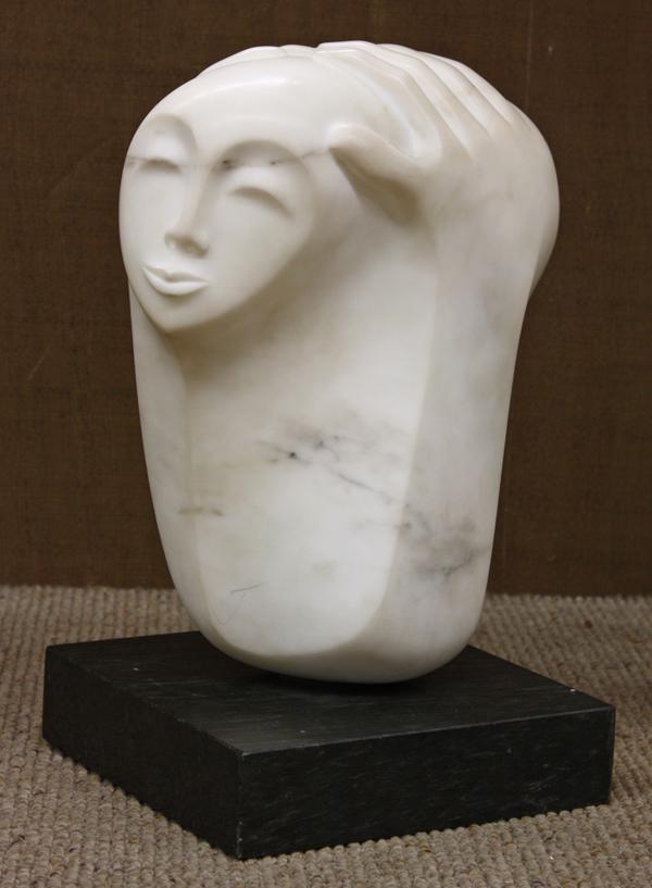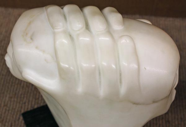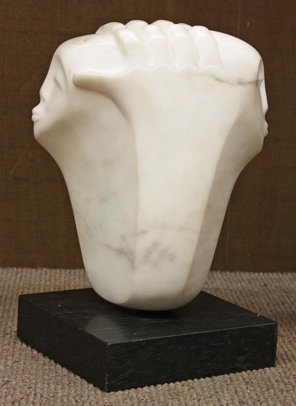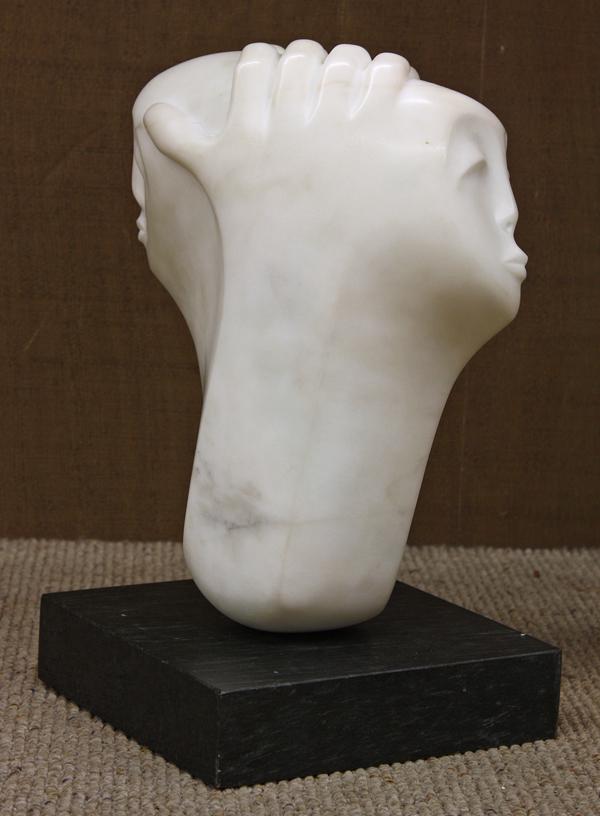 Marble sculpture, ''Benediction #2,'' by Susan Lowenherz (American, 20th century), unsigned, dark green marble base, sculpture dimensions: 11.75''h x 5.5''w x 9.25''d, overall 13.75''h x 7.75''w x 9.25''d. Provenance: Magnes Museum (Oakland, CA) deaccession