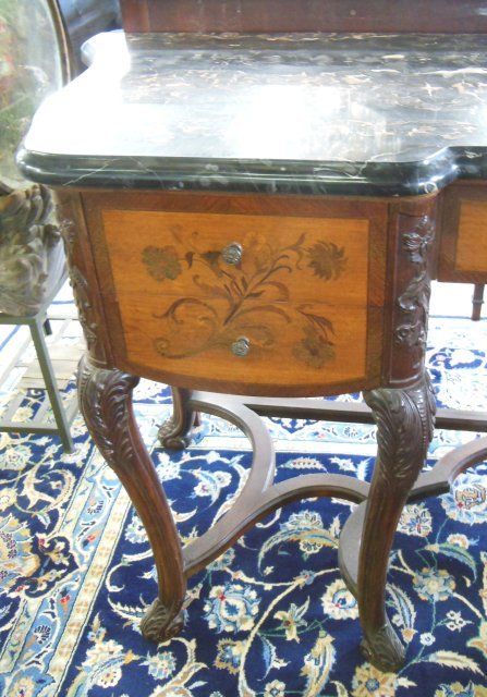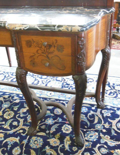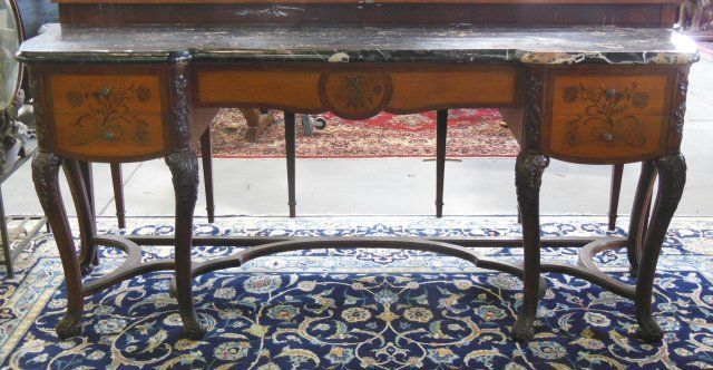 Marble cracked & repaired. Approx. 64.25" W x 22.5" D x 35" H.