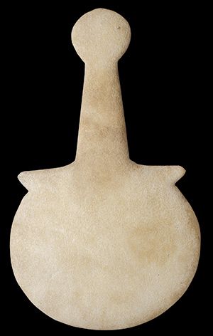 Marbles. Anatolian marble idol. Early bronze age (2700/2300 BC). D/ Close to Kusura type, with rounded body, tapering neck, small circular head. 19 cm high. Thin sign of neck break.