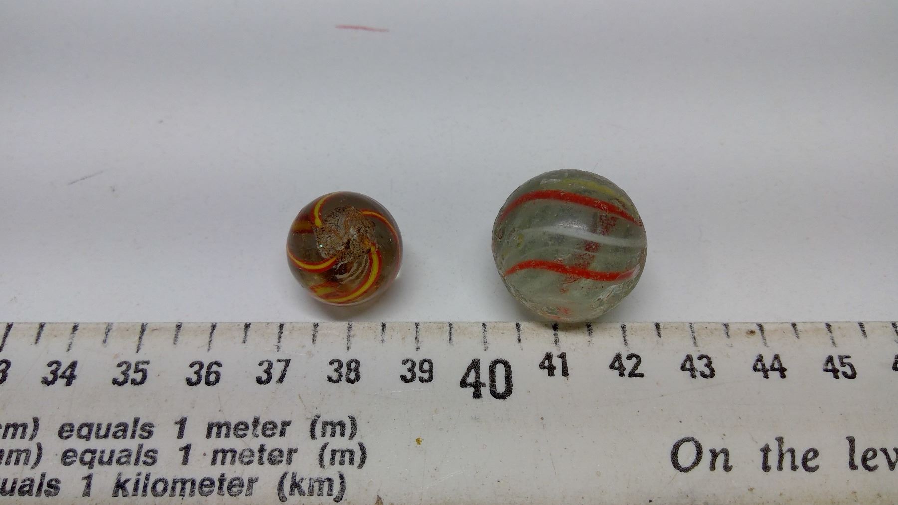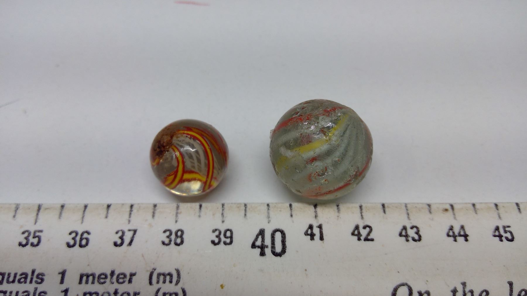 Marbles, Basket Swirl 1” fair condition, latticinio core, ½” very good condition