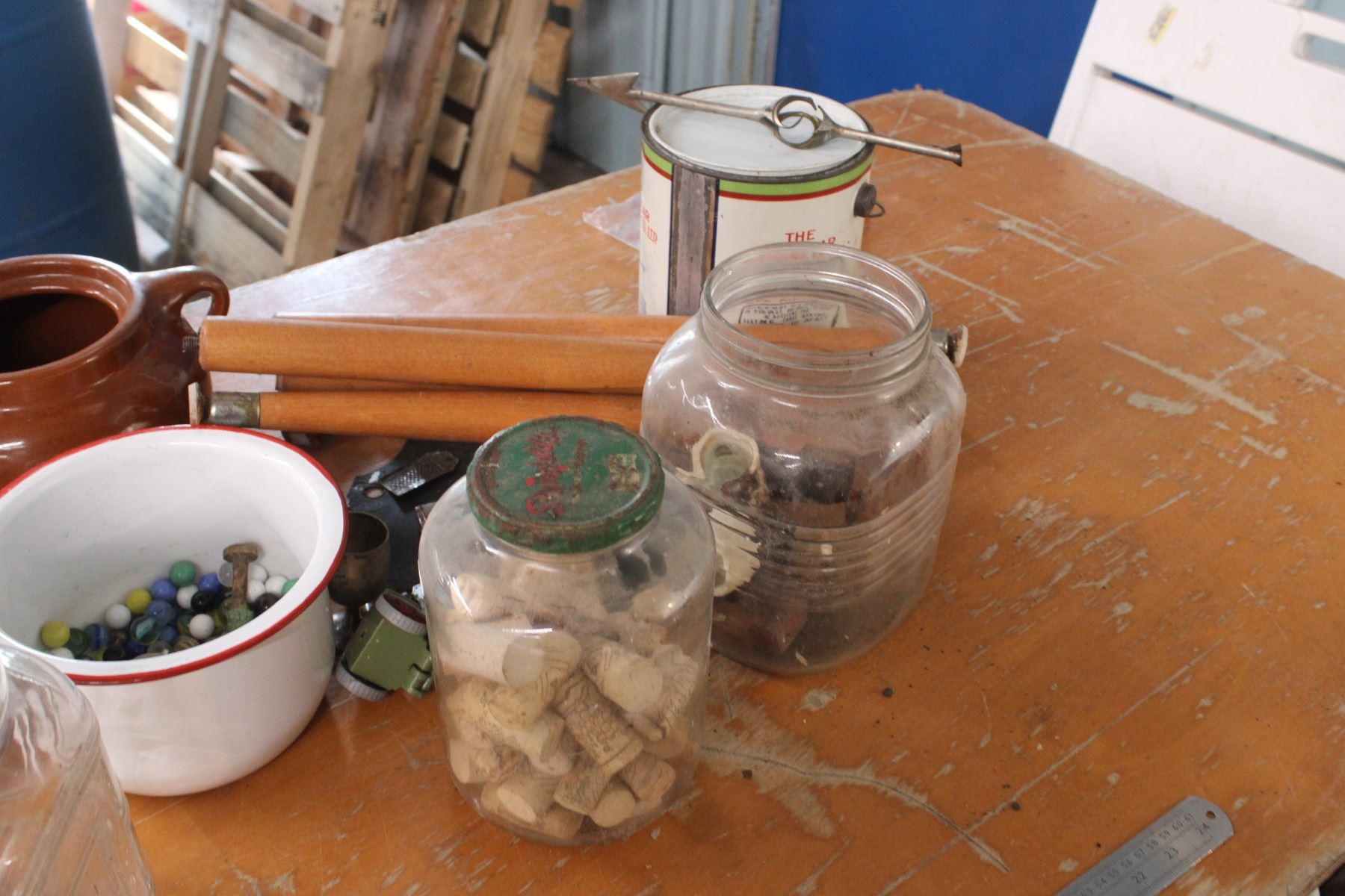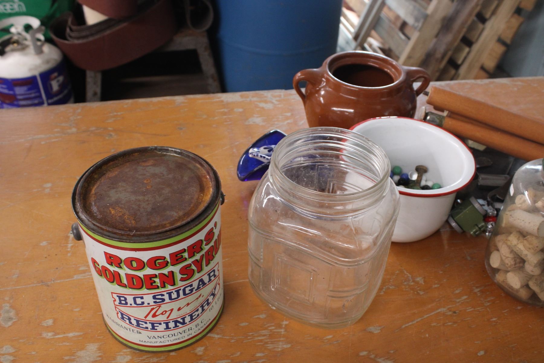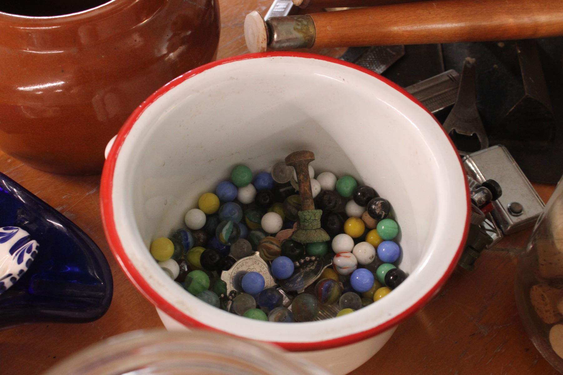Marbles Enamel Bean Lot Rogers Syrup Pail and Misc Items