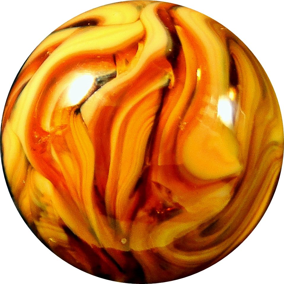 CHAMPION AGATE COMPANY, Furnace Scraping. "Furnace Scraping". Yellows, browns and reds. Typical annealing fractures in the glass. Pennsboro WV, circa 1980-1990. 5/8". Mint (9.8).