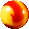 PELTIER GLASS COMPANY, National Line Rainbo. Two-color four-ribbon National Line Rainbo Ruby Bee. Four red ribbons on yellow base. In great shape. Superior example! Ottawa IL, circa 1930-1935. 5/8". Mint (9.8).