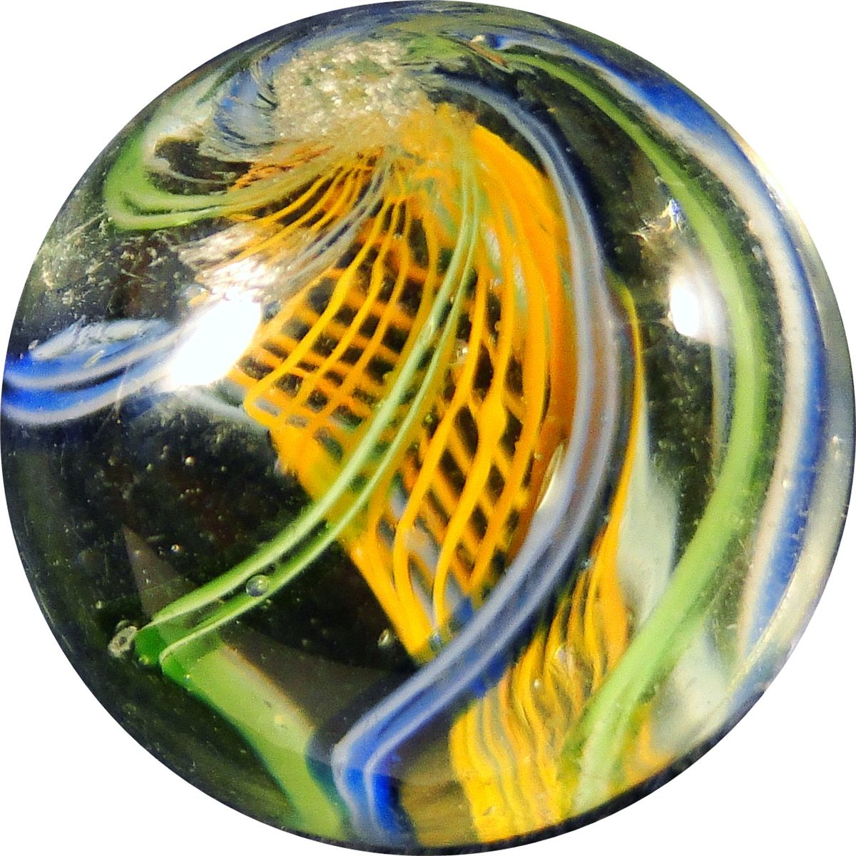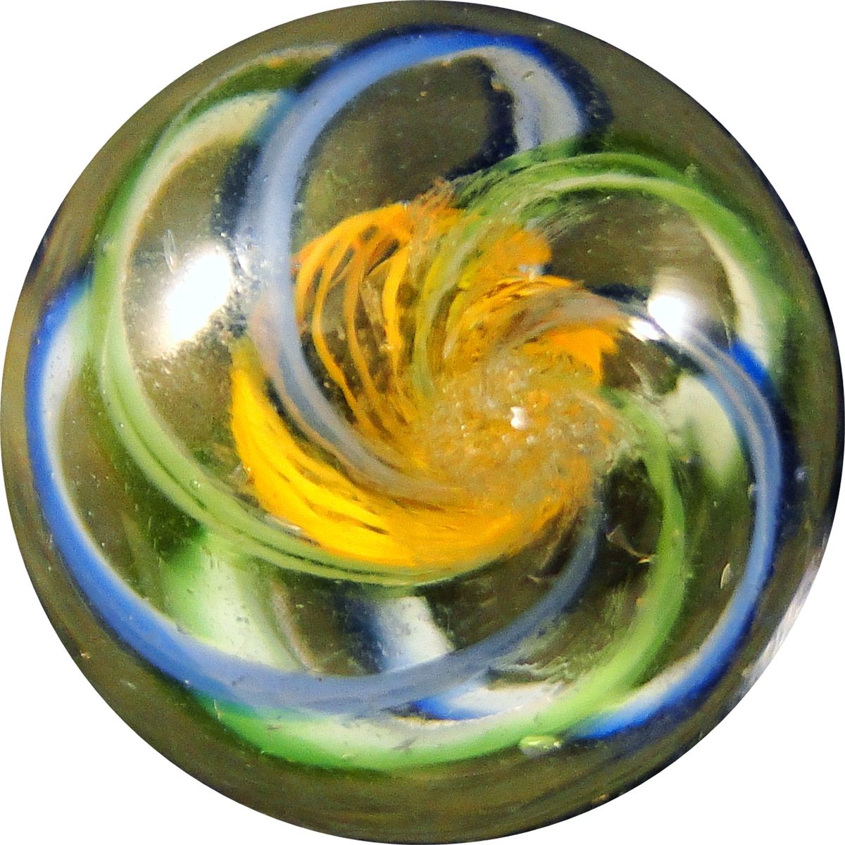 SWIRL, Latticinio Core. Yellow Latticinio Core. Beauty. Germany, circa 1870-1920. 21/32". Mint (9.8).