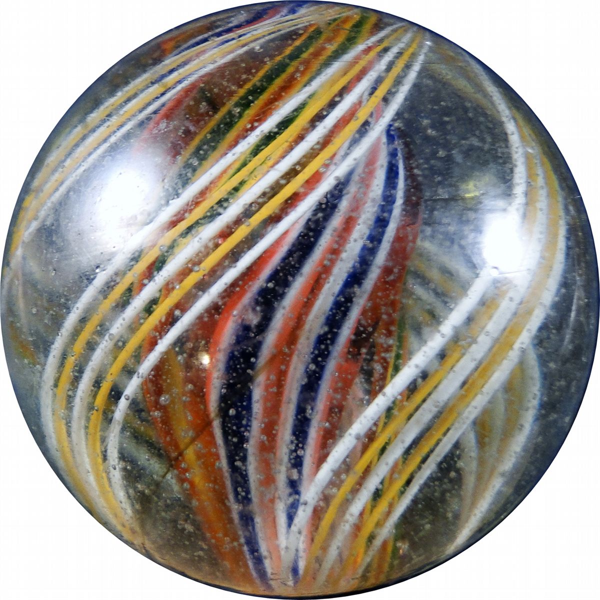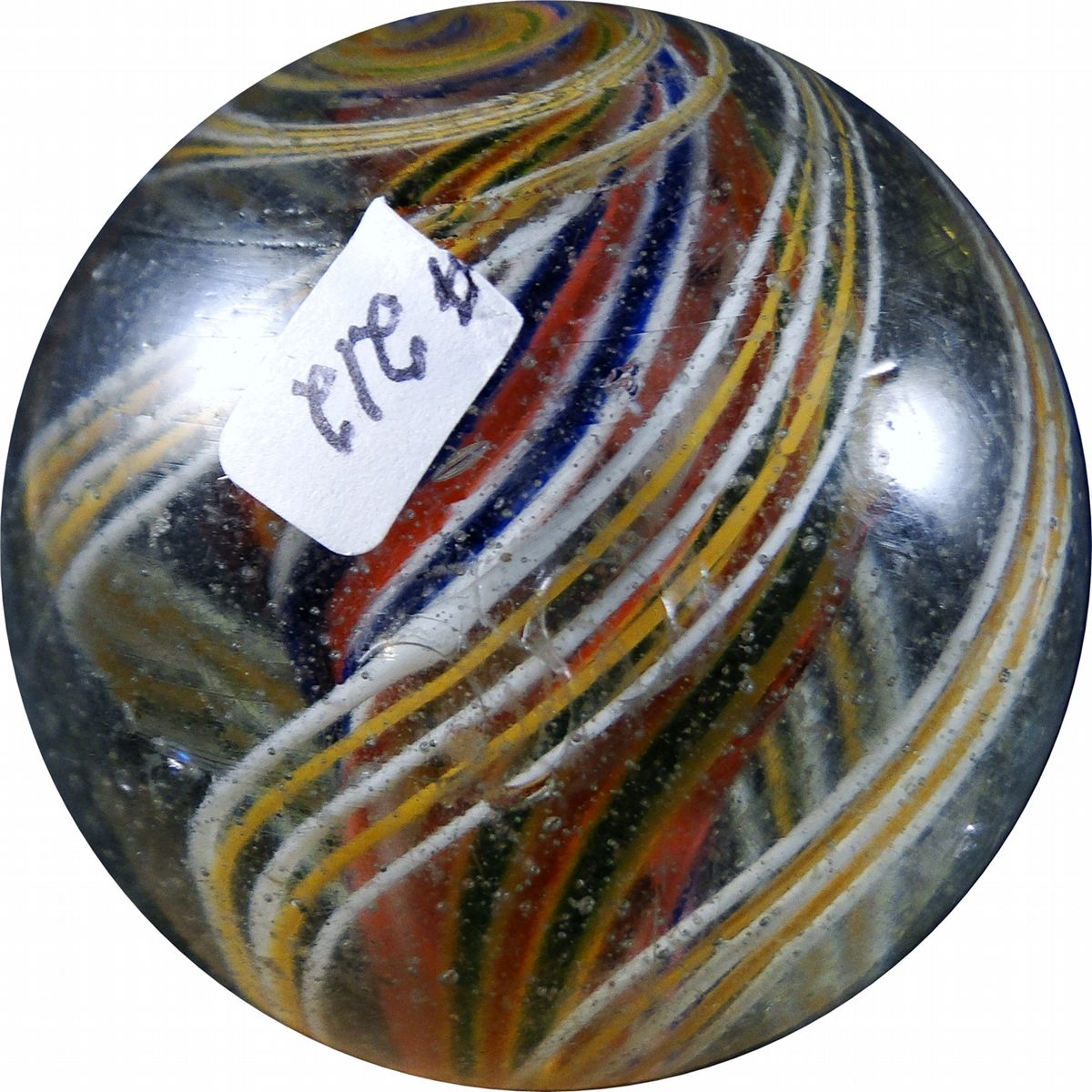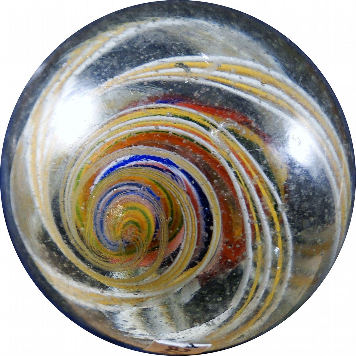 SWIRL, Divided Core. Four-band core. Huge marble. Nice coloring. Two small subsurface moons, several smaller ones. A few tiny pits and pinpricks. Germany, circa 1870-1920. 2-1/4". Near Mint(-) (8.2).