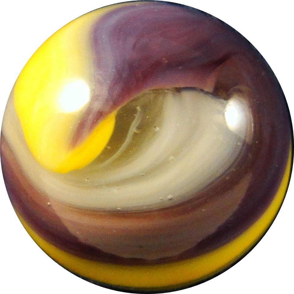 Marbles: Lot 116. Akro Agate. Purple/Yellow Popeye. 5/8". Mint 9.7.