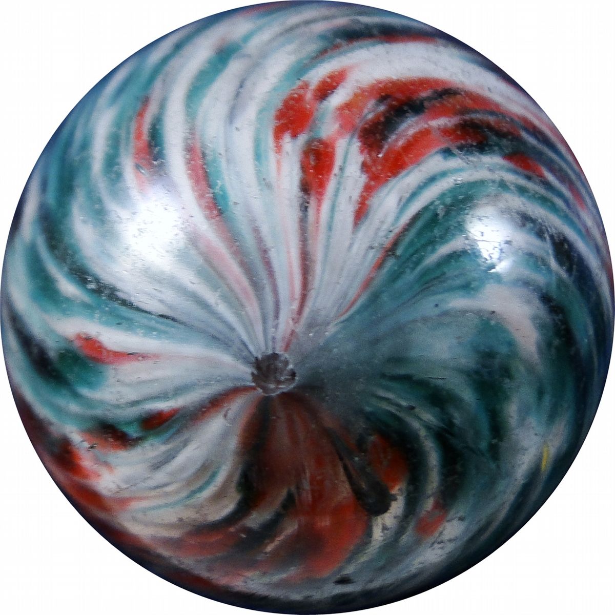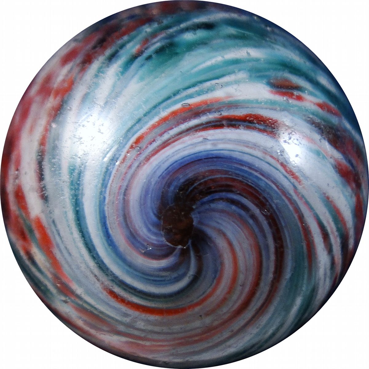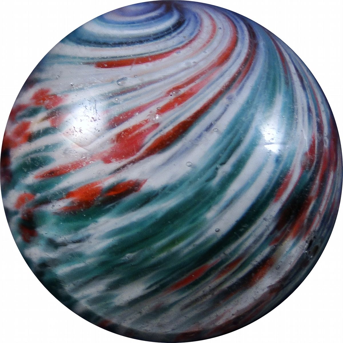 END OF DAY, Paneled Onionskin. Four-panel Onionskin. White core. Two pink panels, two turquoise panels. Tight twist. Two tiny chips, next to each other. A little surface wear. Germany, circa 1870-1920. 1-1/16". Near Mint(+) (8.7).