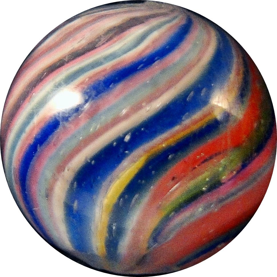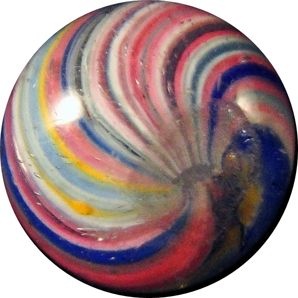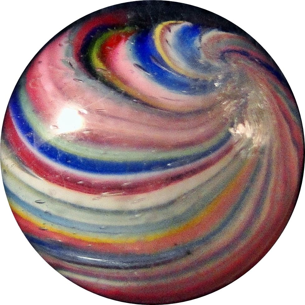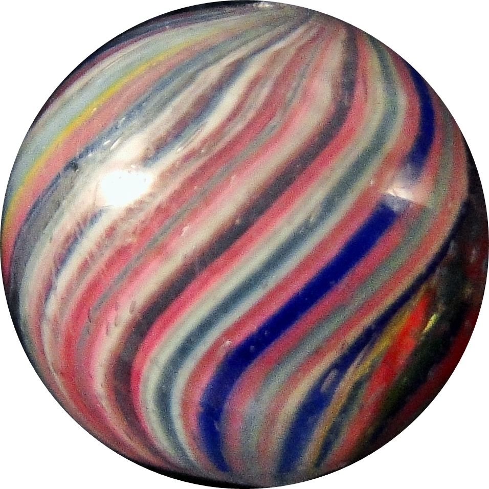 Lot 12. END OF DAY, Onionskin. Very pretty Onionskin. A couple of light scratches and a melt spot. One shallow lobe in the core. Germany, circa 1870-1920. 9/16". Mint(-) (9.0). Estimate: $30-$60