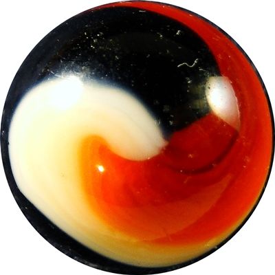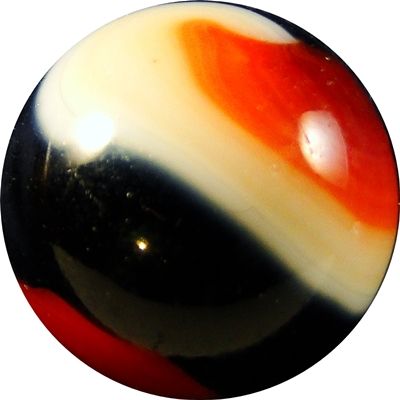 Lot 121. AKRO AGATE COMPANY, Corkscrew. Indian Blanket Corkscrew. Black, red, white. Clarksburg WV, circa 1927-1935.11/16". Mint (9.7).