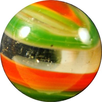 Lot 126. AKRO AGATE COMPANY, Popeye Corkscrew. Popeye Corkscrew. Hybrid. Red, Green and narrow Yellow. A couple of pinpricks. Clarksburg WV, circa 1925-1935. 21/32". Mint(-) (9.2).