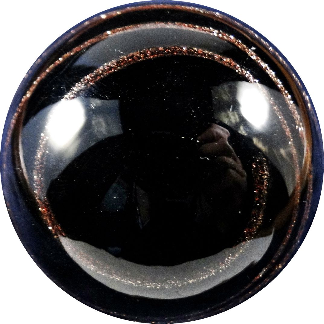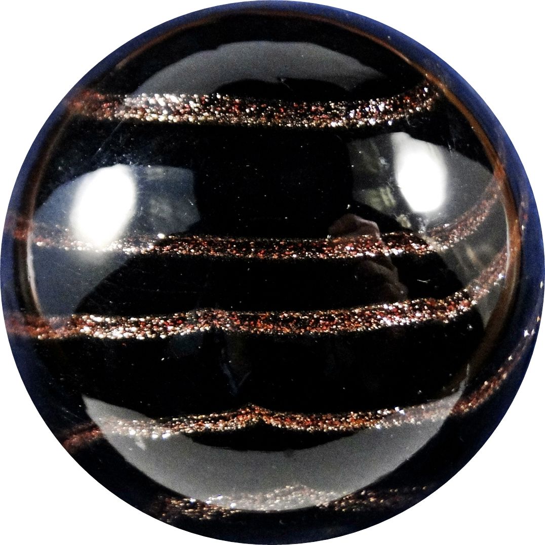 CONTEMPORARY HANDMADE . Opaque black core. Lutz spiral around it. Clear outer layer. Beautiful marble. Unsigned, possibly House of Glass. 1-13/16". Mint (9.9). The marble is at least 20 years old. Provenance: ex-collection Joe Rocco. Estimate: $30-$60