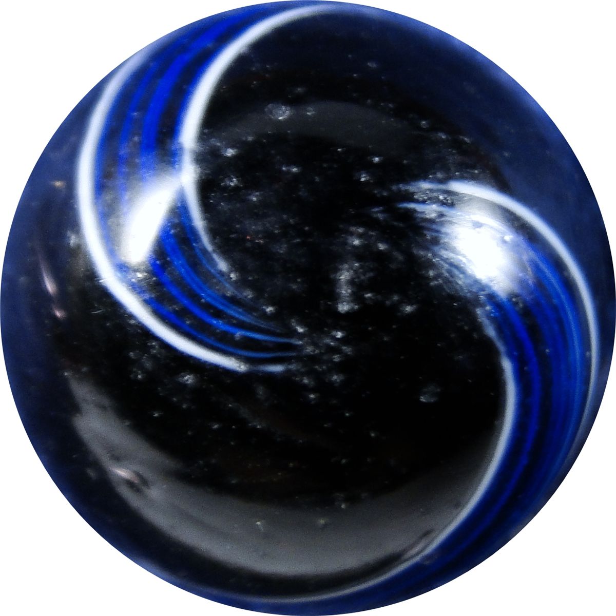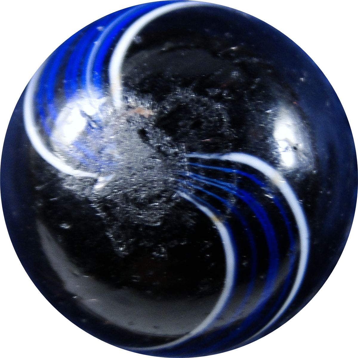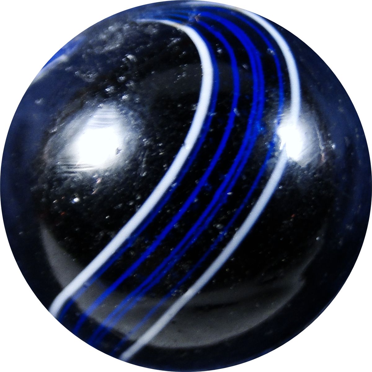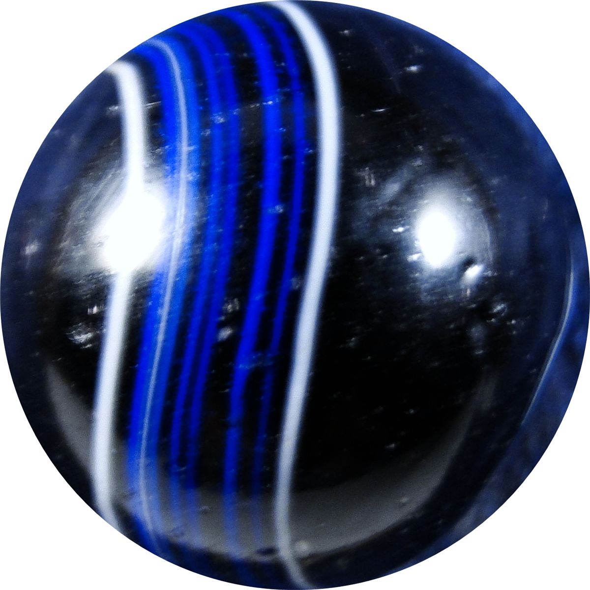 OTHER HANDMADE, Indian. Maglite. Transparent dark purple base. Two bands of blue and white. About forty percent coverage. One very tiny flake, several tiny pinpricks. Views better than the grade. Germany, circa 1870-1920. 21/32". Near Mint(+) (8.9).