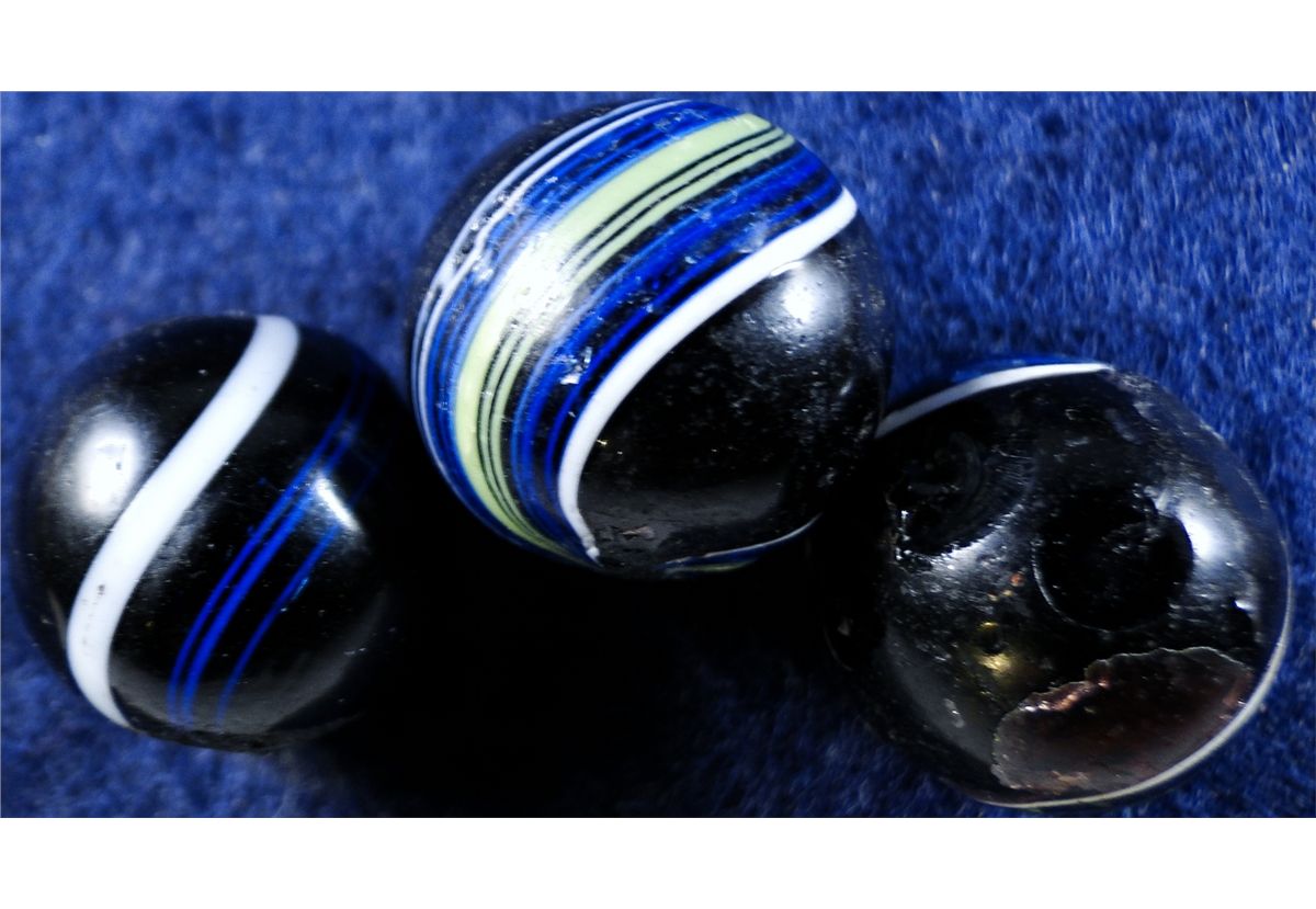 OTHER HANDMADE, Indian. Lot of three marbles. All are Indians. 5/8" to 21/32". Near Mint)(+) (8.8) to Near Mint(-) (8.0).