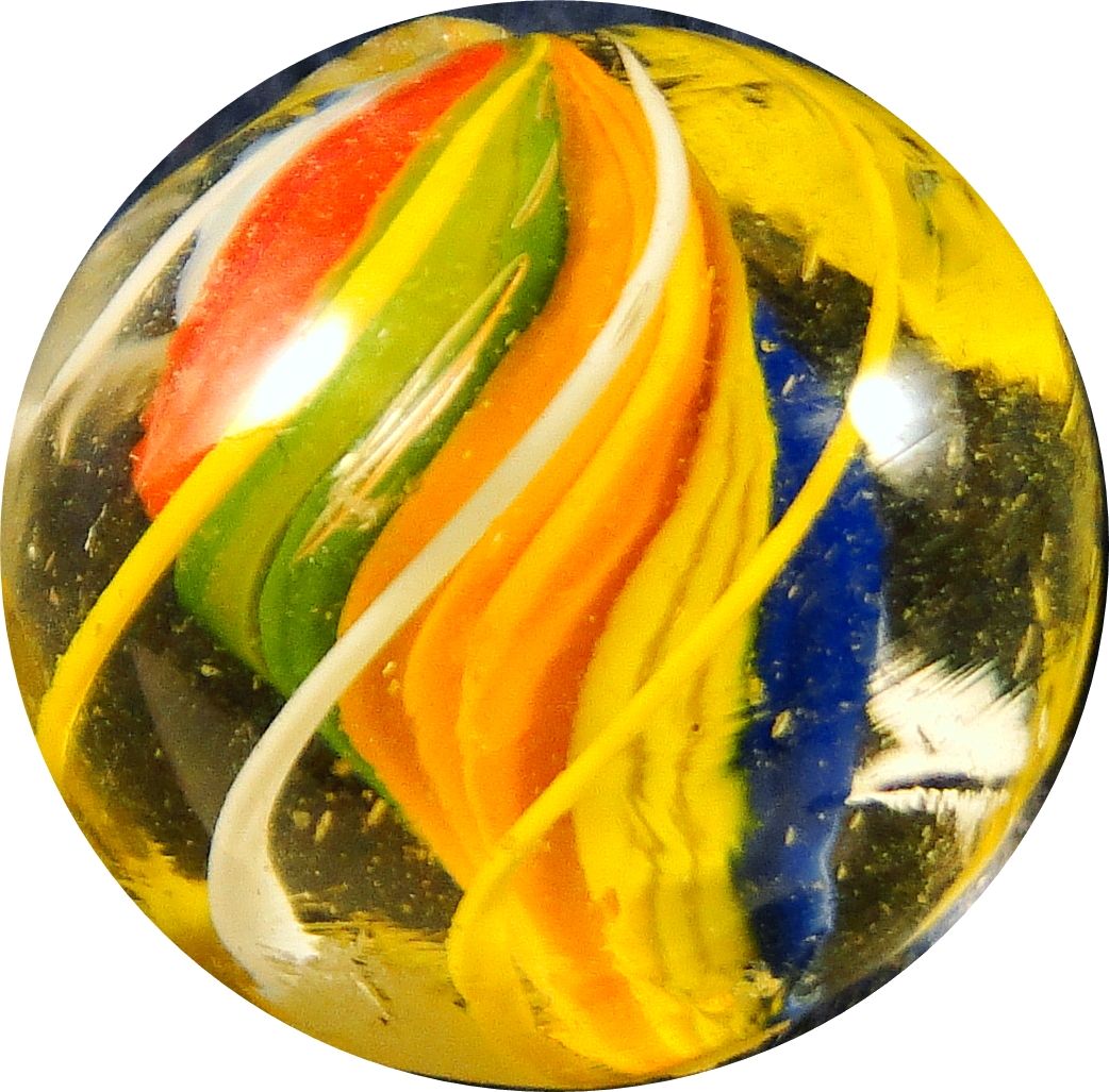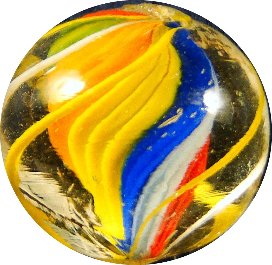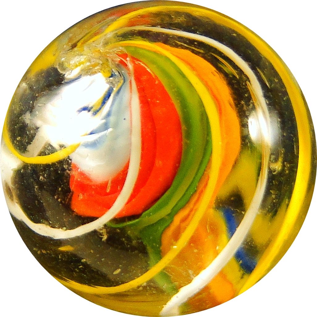 SWIRL, Solid Core. Brightly colored Solid Core Swirl. One tiny flake. Germany, circa 1870-1920. 11/16". Near Mint(+) (8.9).