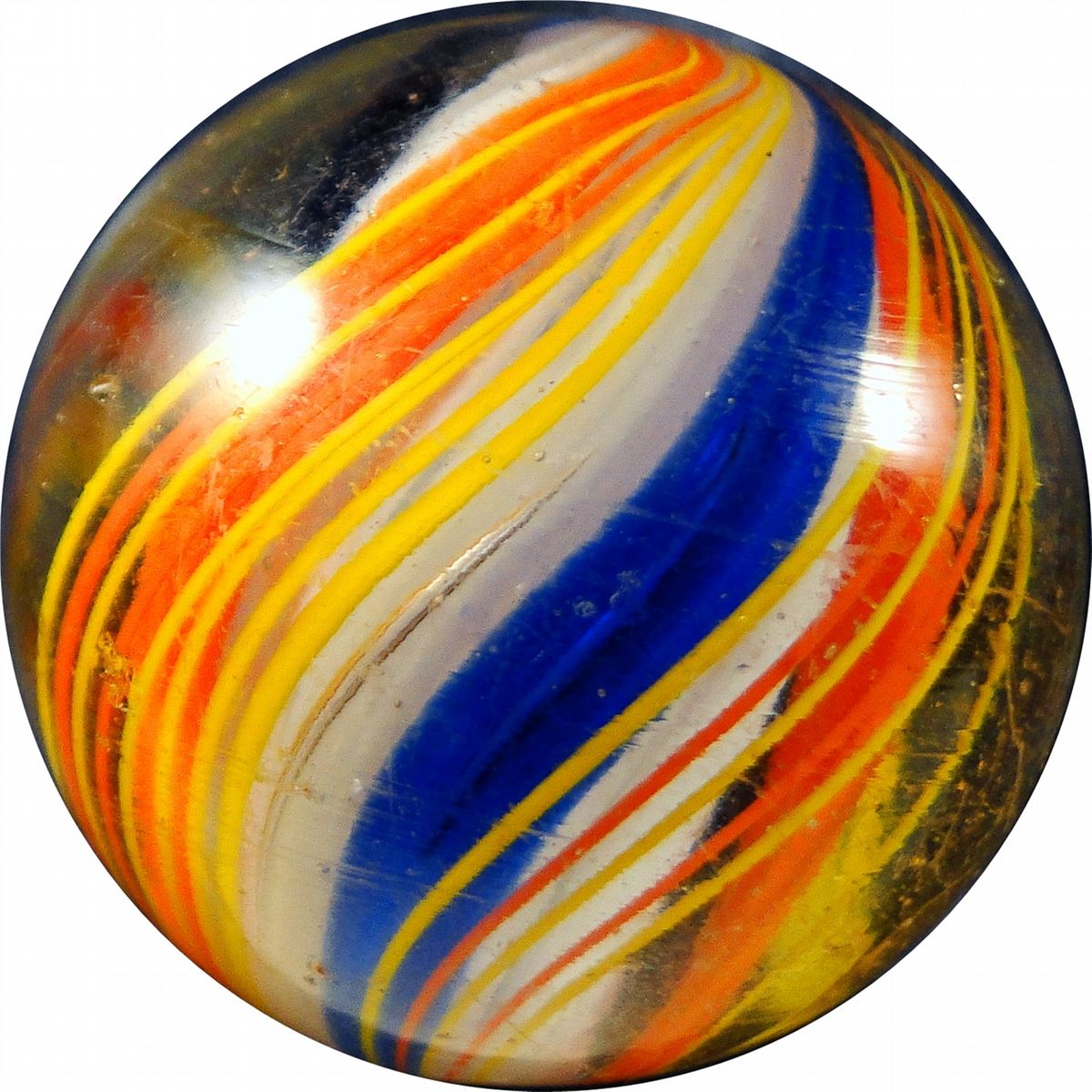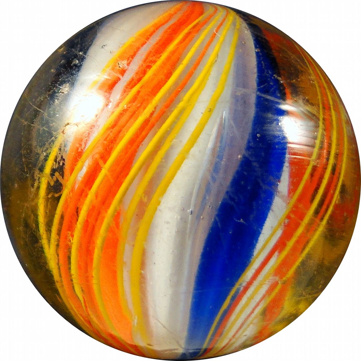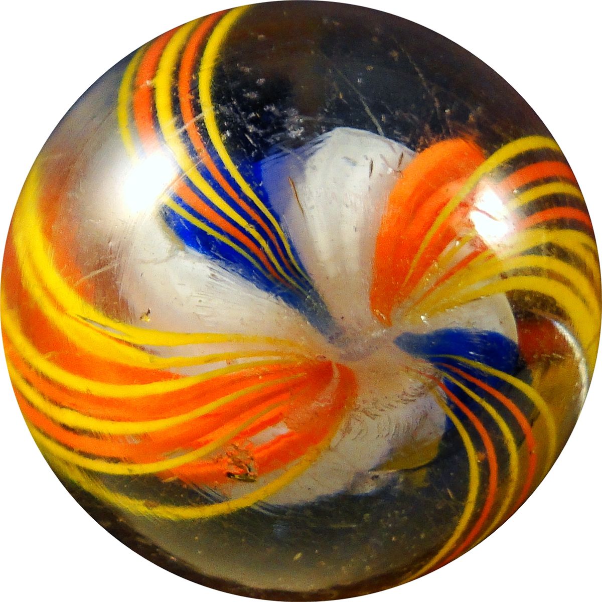 SWIRL, Solid Core. Nice Solid Core Swirl. "English" colors. Three layer. Three tiny flakes, some surface rubbing. Germany, circa 1870-1920. 1-3/16". Near Mint(+) (8.7).