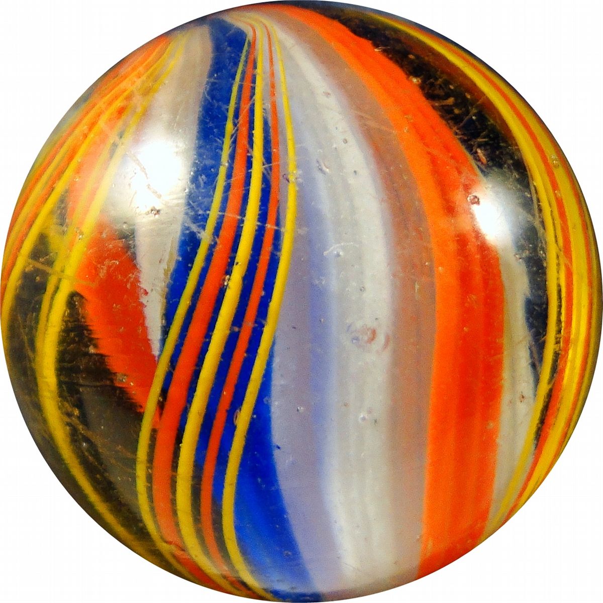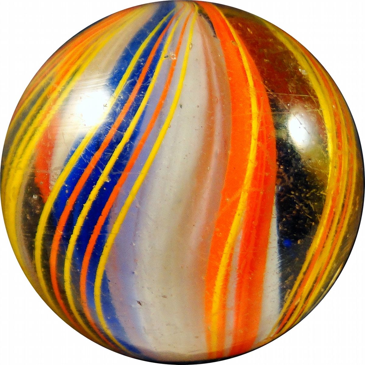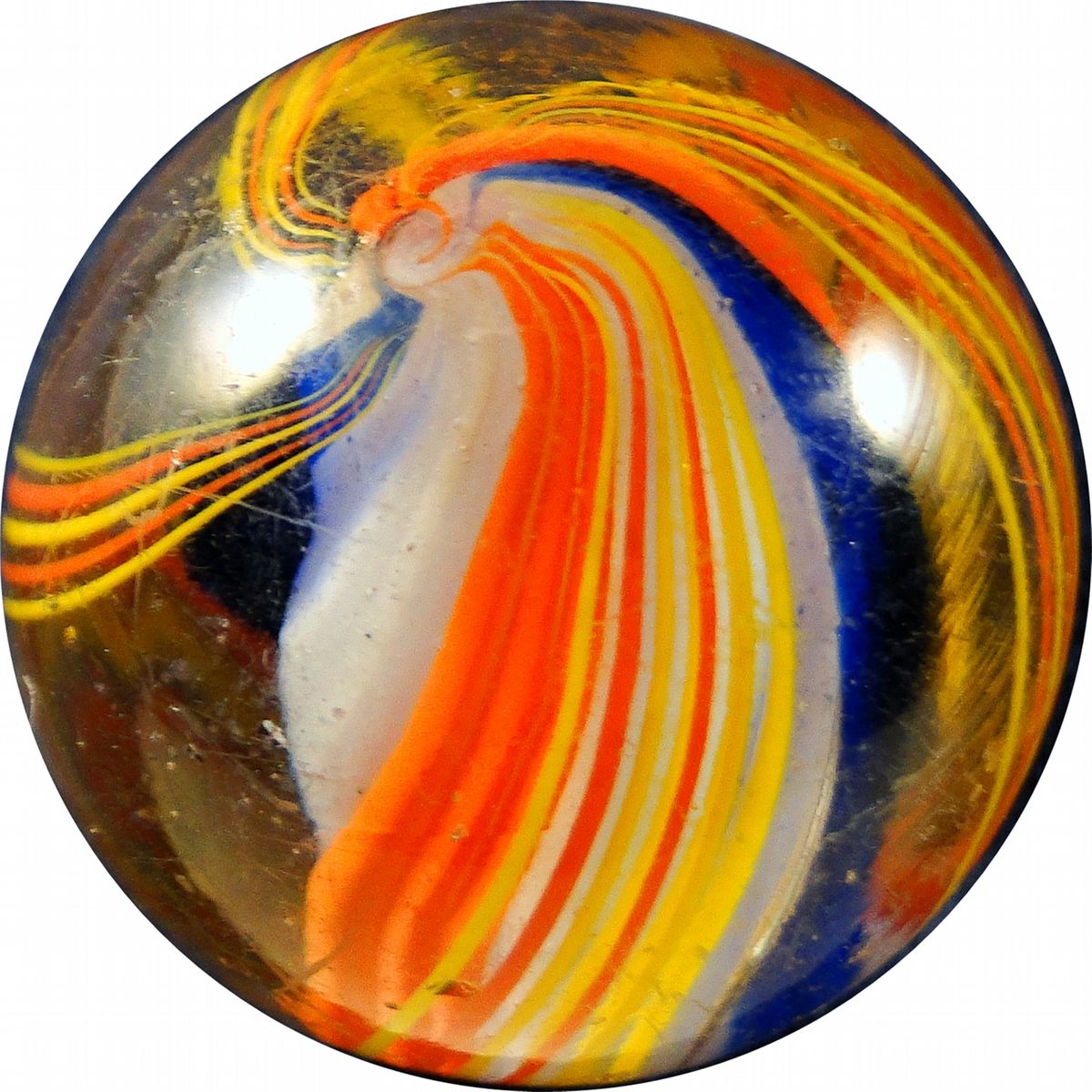 SWIRL, Solid Core. Nice Solid Core Swirl. "English" colors. Three layer. Three tiny flakes, some surface rubbing. Germany, circa 1870-1920. 1-3/16". Near Mint(+) (8.7).