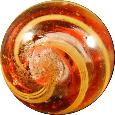 Lot 152. SWIRL, Divided Core. Rare example. Divided Core Swirl in latticinio form. Three-layer marble. The core bands are strands of white latticinio. Pretty. Germany, circa 1870-1920. 5/8". Mint (9.6).
