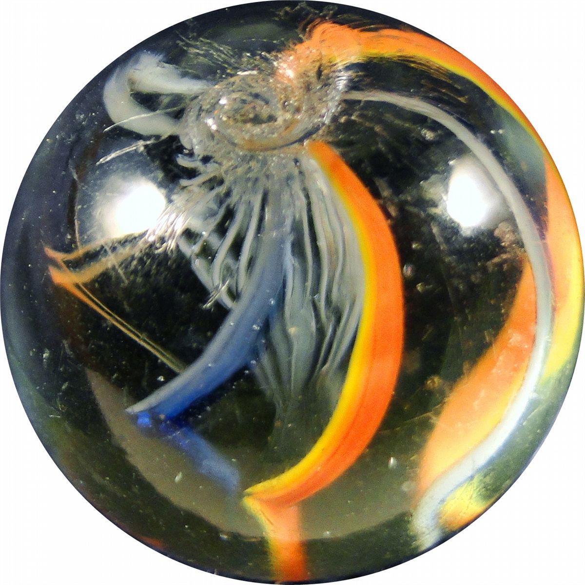 Marbles: Lot 16. Swirl. Latticinio Core. 27/32". MInt- 9.2.