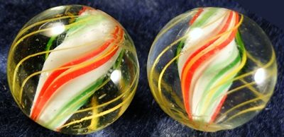 Lot 161. SWIRL, Solid Core. Lot of two (2) marbles. Matched Pair of three-layer Solid Core Swirls. 13/16". Mint (9.8).
