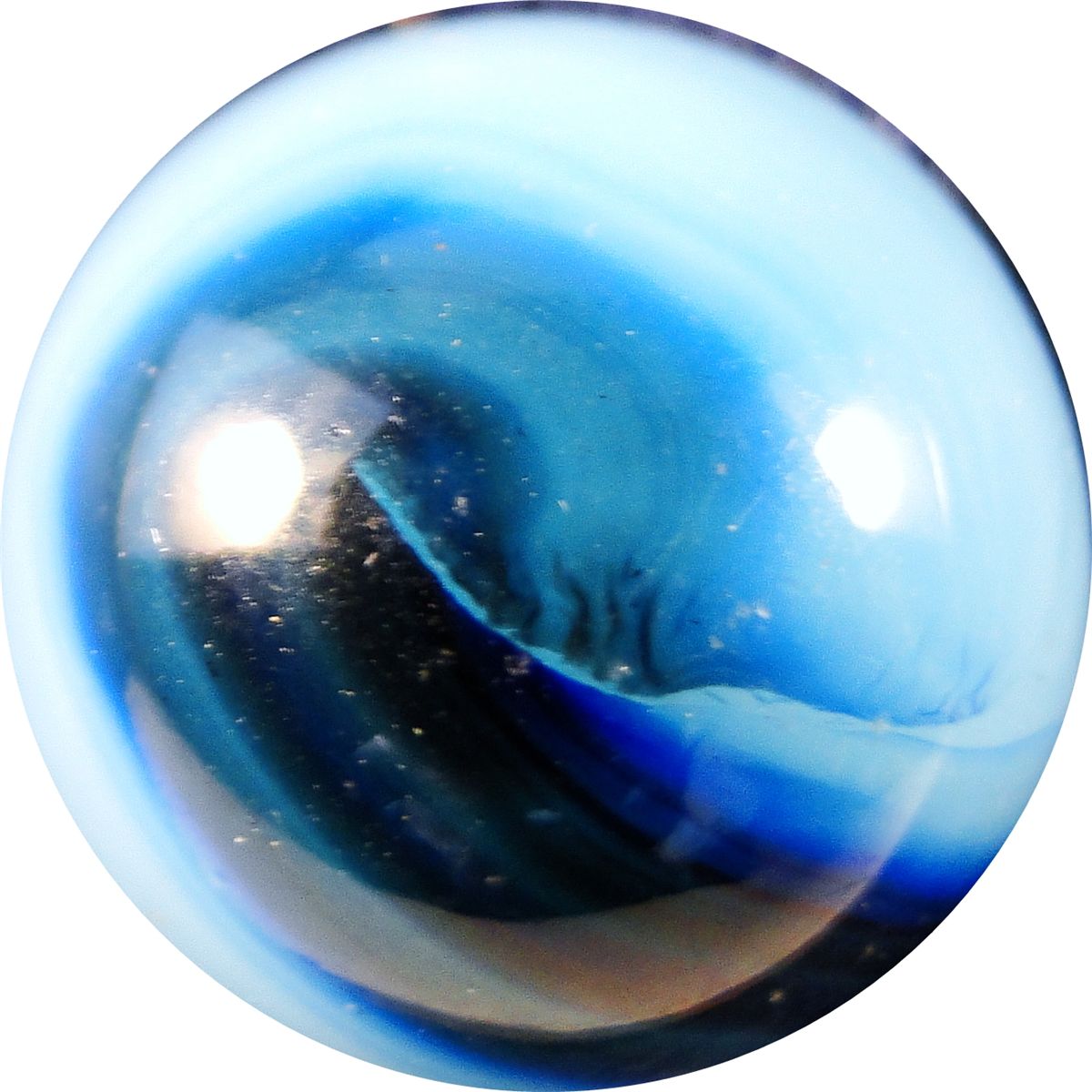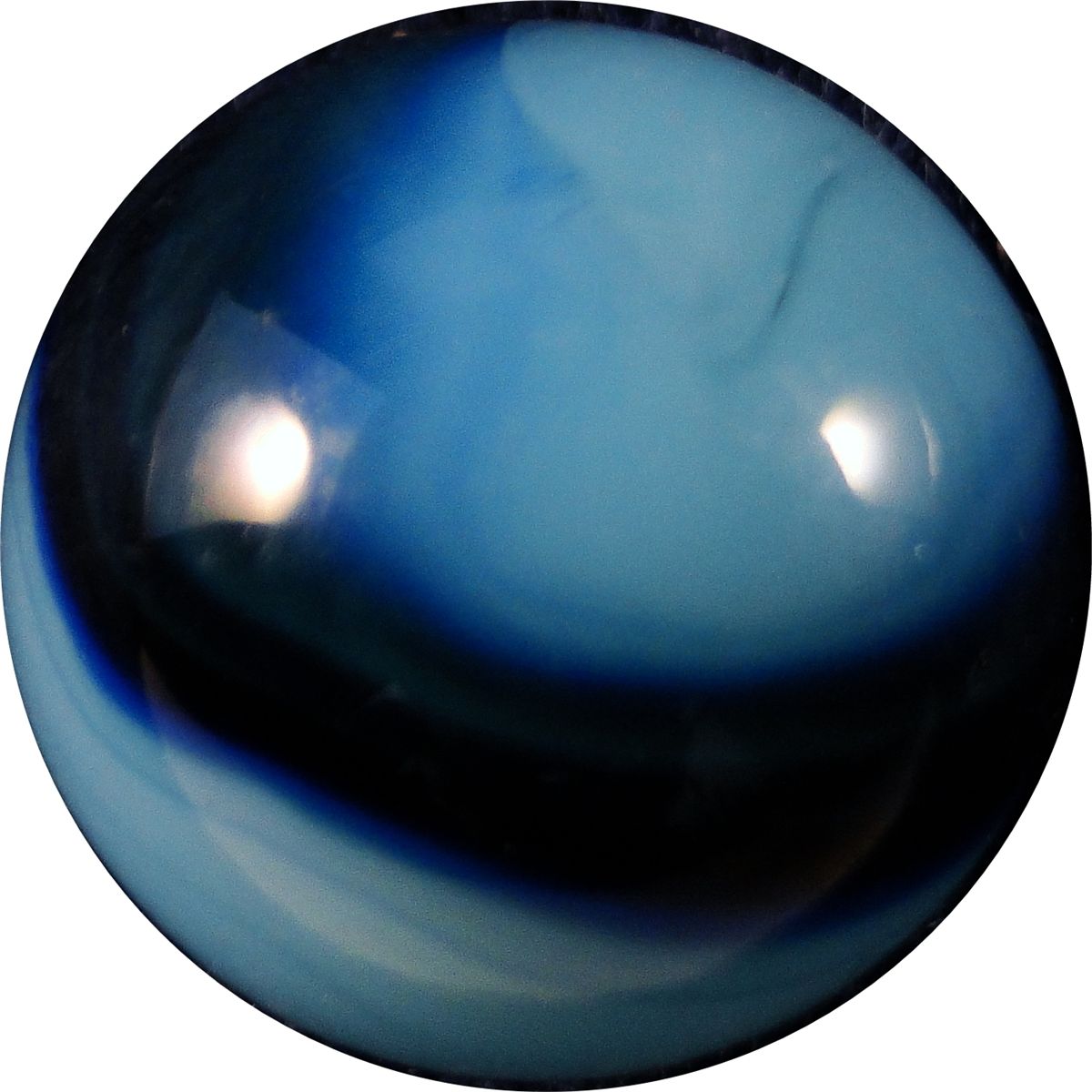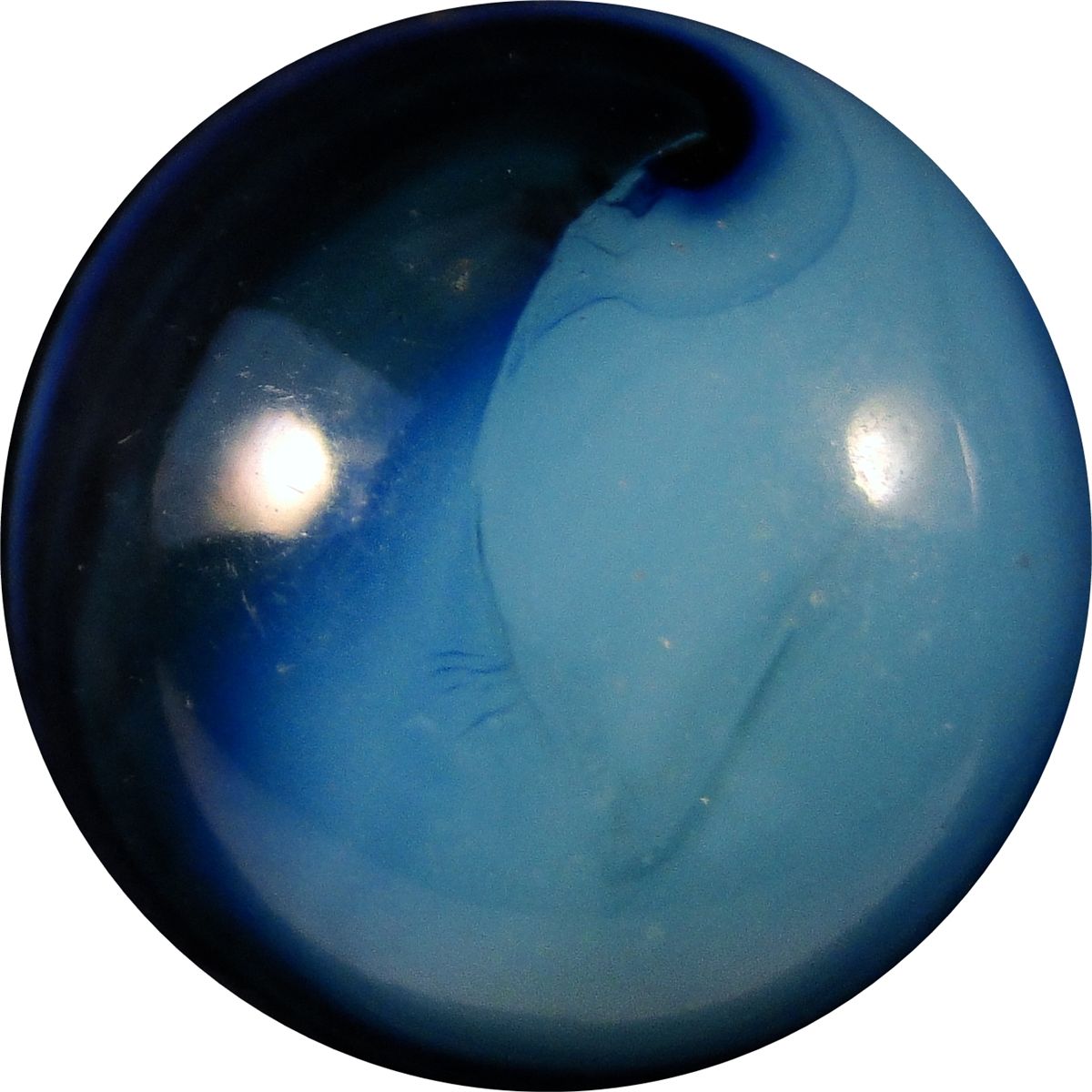 Interesting three-color Corkscrew. Baby blue base. Black snake on it, edged by darker blue. A couple of tiny pinpricks. Clarksburg WV, circa 1927-1935. 5/8". Mint(-) (9.2).
