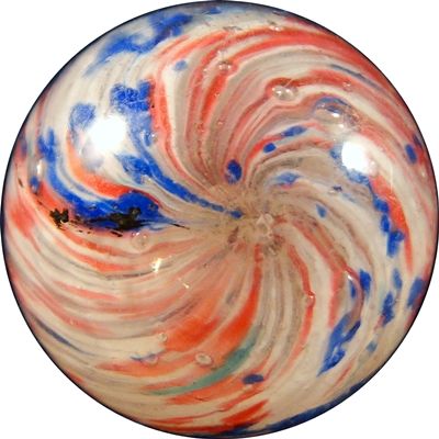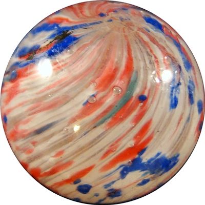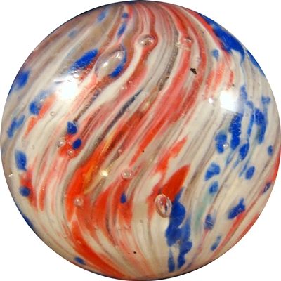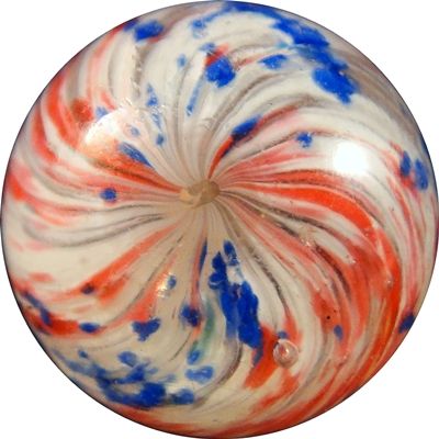 Lot 184. END OF DAY, Paneled Onionskin. Rare and superb four-panel Onionskin. Core is white with pink skin. There are two wide panels of blue "dots". Surface is in great shape. Germany, circa 1850-1920. 13/16". Mint (9.9).