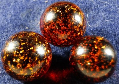 Lot 190. OTHER HANDMADE, Mica. Lot of three (3) marbles. All are shooter Micas. They are all the same shade of Rust. Hard shade to find. Probably all from the same cane. 27/32". Mint (9.9-9.7).