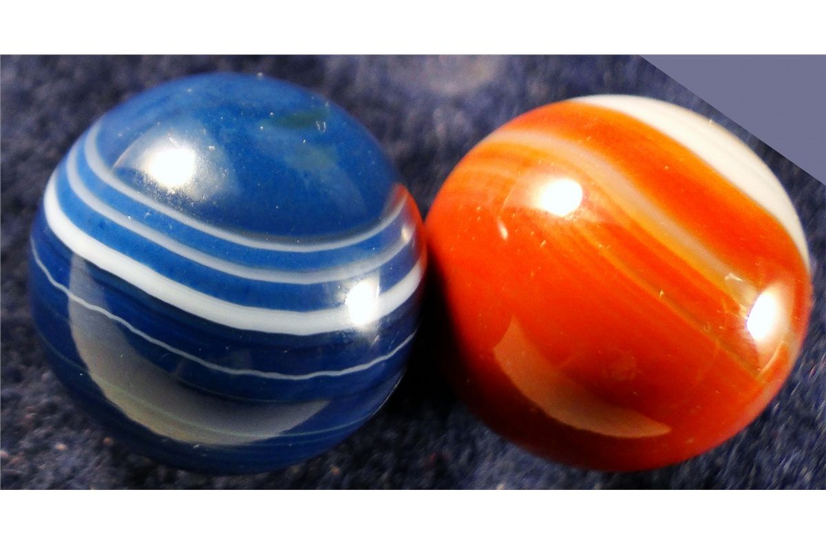 Marbles: Lot 23. 2 Dyed Agates. 25/32" & 13/16". Mint 9.9.