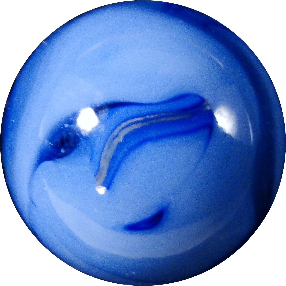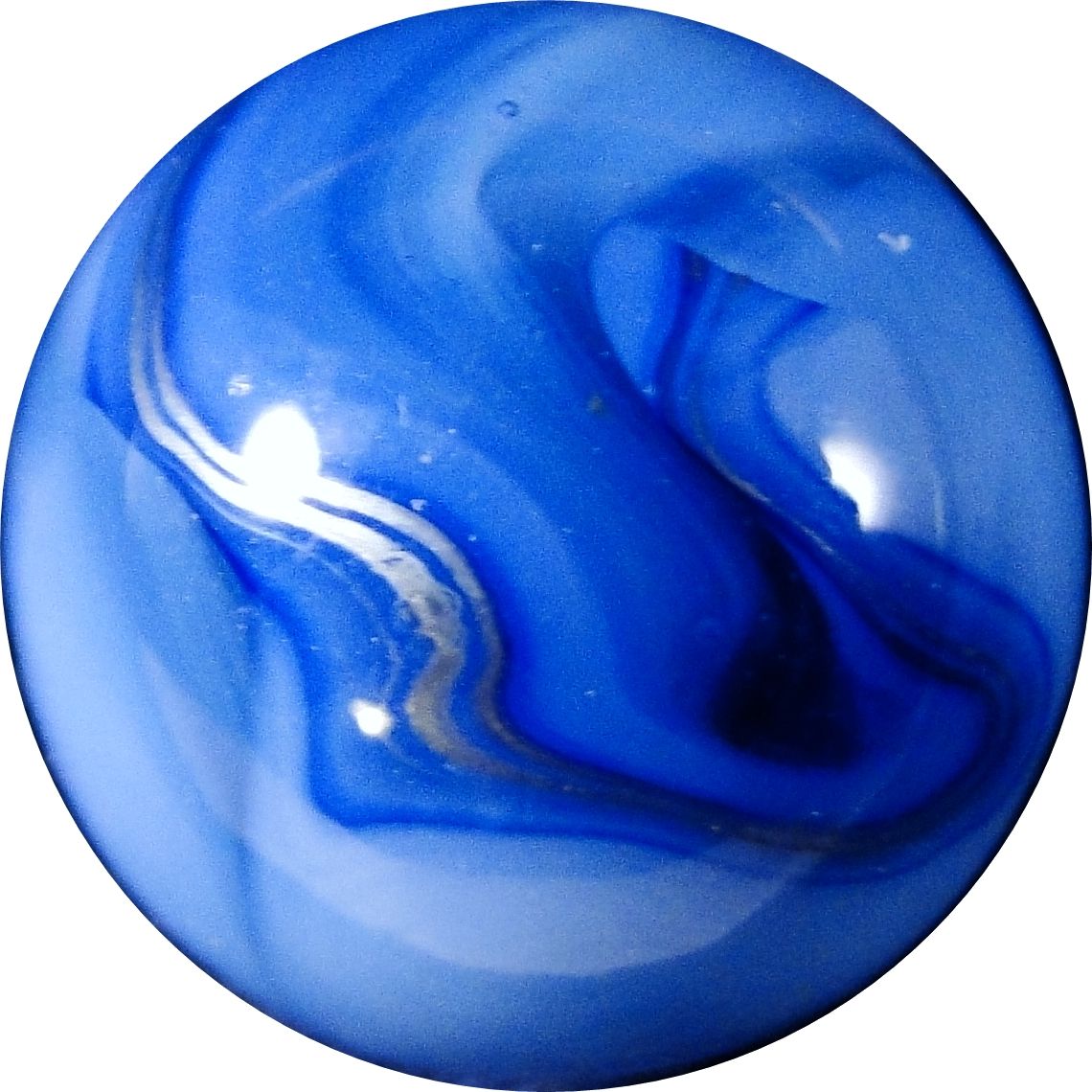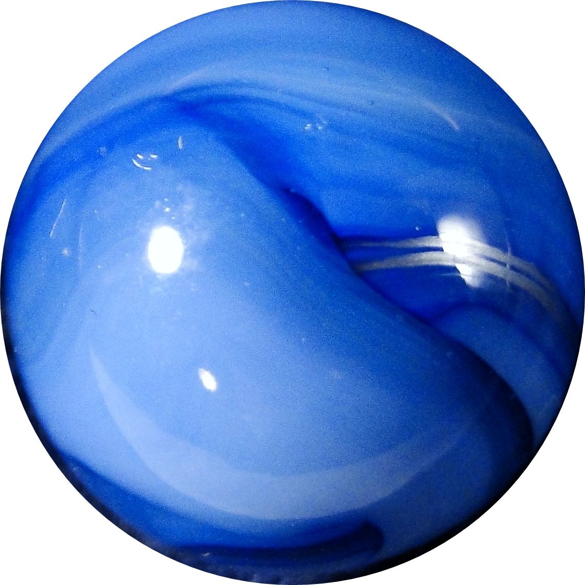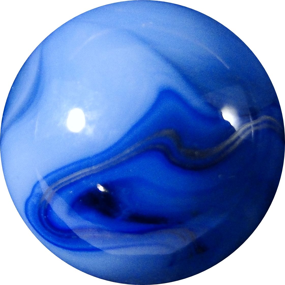 ALLEY COMPANIES. Blue and clear swirl with a metallic swirl. Pretty. West Virginia, circa 1935-1950. 9/16". Mint (9.9).