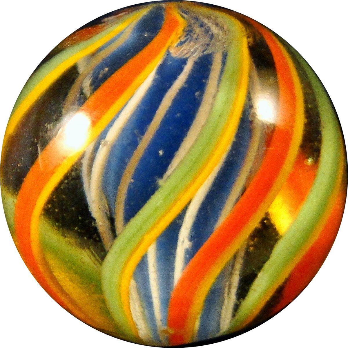 Lot 25. SWIRL, Solid Core. Three-layer Solid Core Swirl. Core is Wedgwood Blue. White strands above the core. Colored outer bands. Pretty. One tiny chip. Germany, circa 1870-1920. 21/32". Near Mint(+) (8.9). Estimate: $25-$50