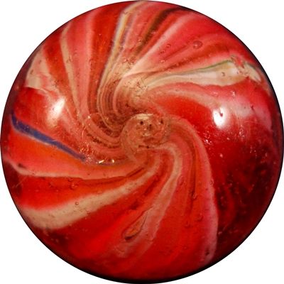 END OF DAY, Onionskin. Pink and white core. One melt spot on the surface, a couple of very tiny rough spots. Pretty. Germany, circa 1860-1920. 3/4". Mint(-) (9.1). Provenance: ex-collection Joe Rocco.